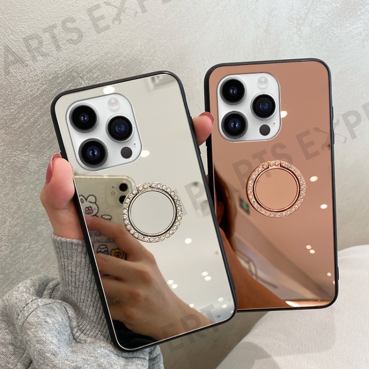 - A rhinestone decorated ring kickstand can support the phone horizontally for hands-free viewing, one hand operating is unobstructed