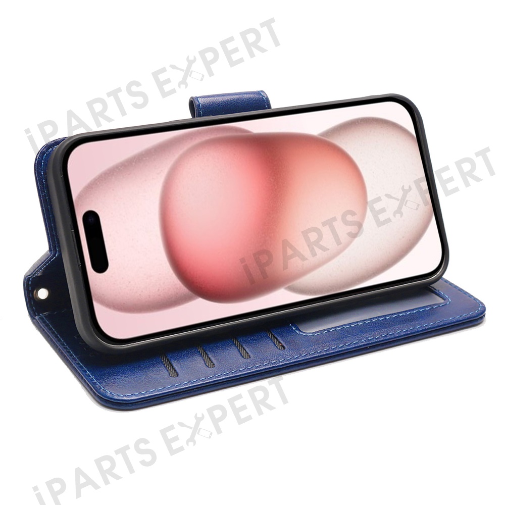 For iPhone 15 Pro Case Stand Card Holder Wallet Leather Phone Cover - Blue