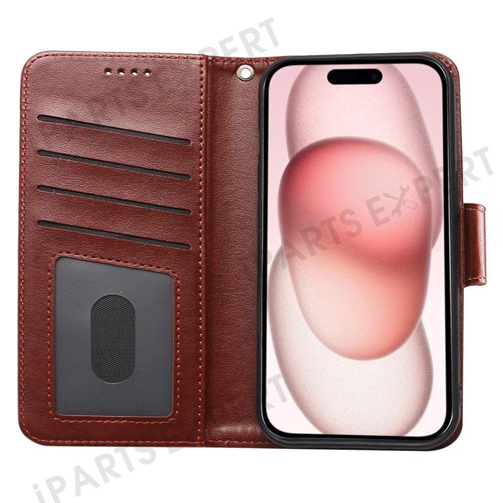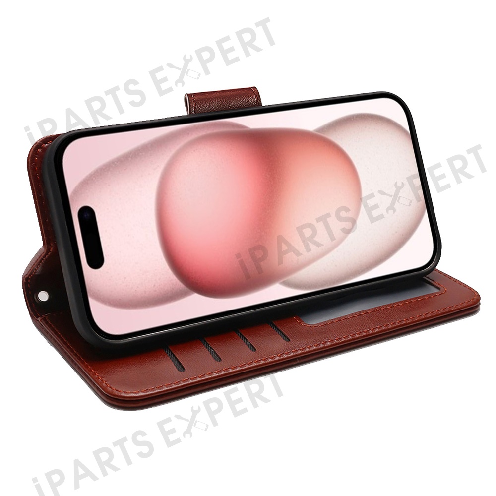 For iPhone 15 Pro Case Stand Card Holder Wallet Leather Phone Cover - Brown