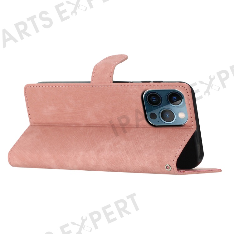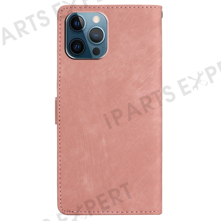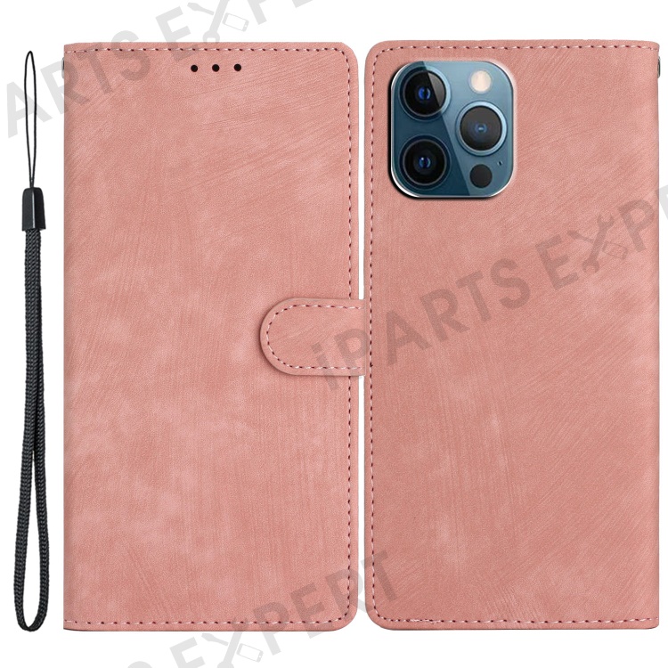 For iPhone 15 Pro Cell Phone Cover PU Leather Wallet Slim-Fit Mobile Phone Case Stand Skin-touch Shell - Rose Gold