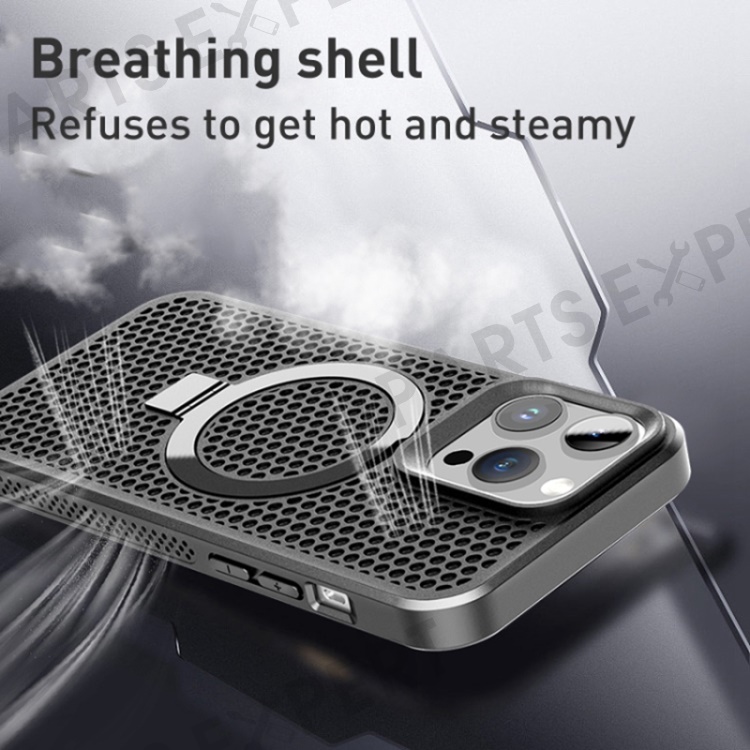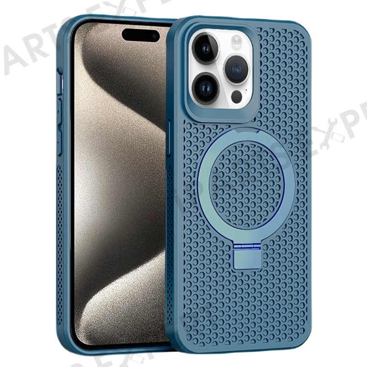 For iPhone 15 Pro Heat Dissipation Rubberized TPU Case Kickstand Magnetic Protective Phone Cover - Navy Blue
