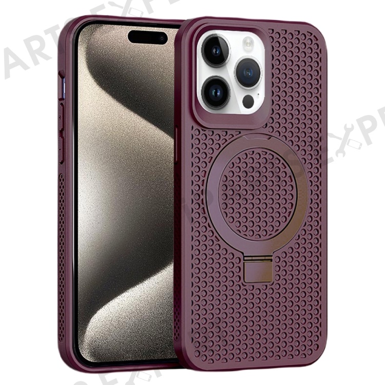 For iPhone 15 Pro Heat Dissipation Rubberized TPU Case Kickstand Magnetic Protective Phone Cover - Wine Red