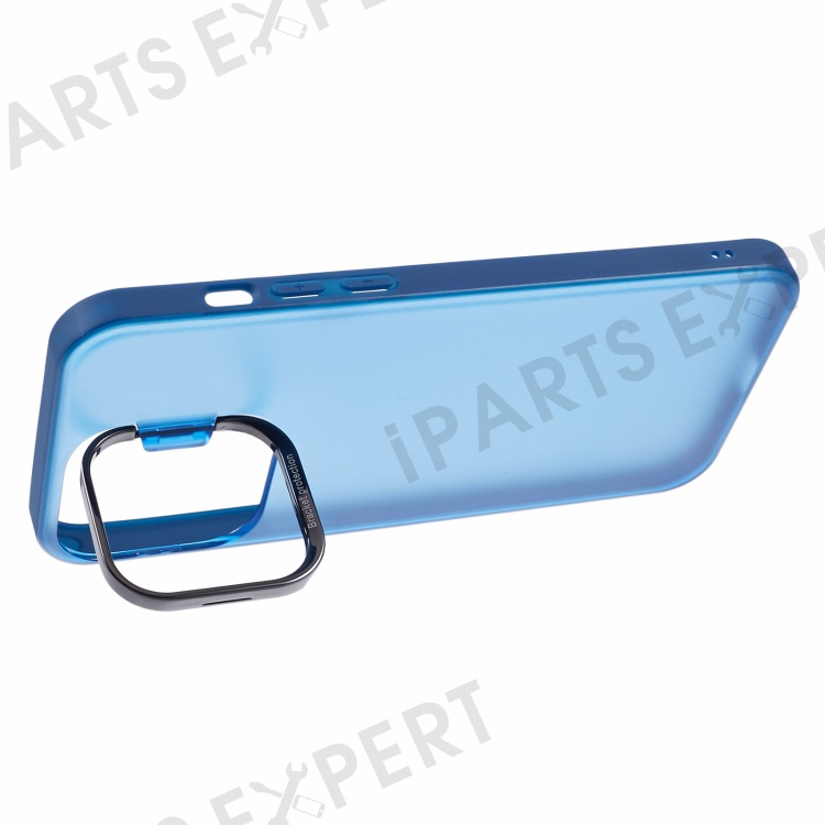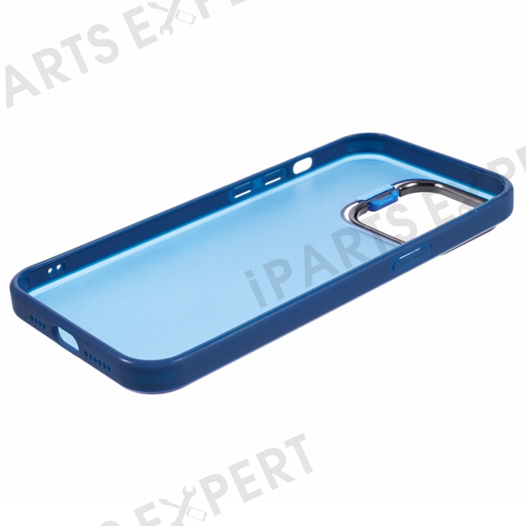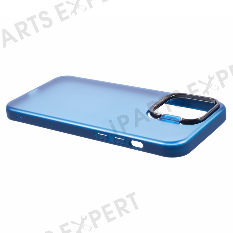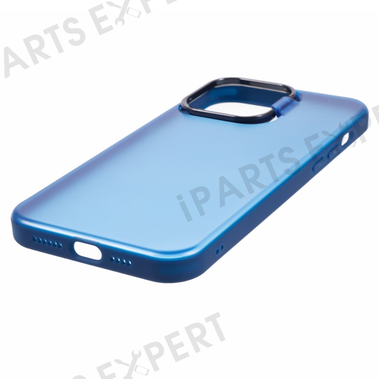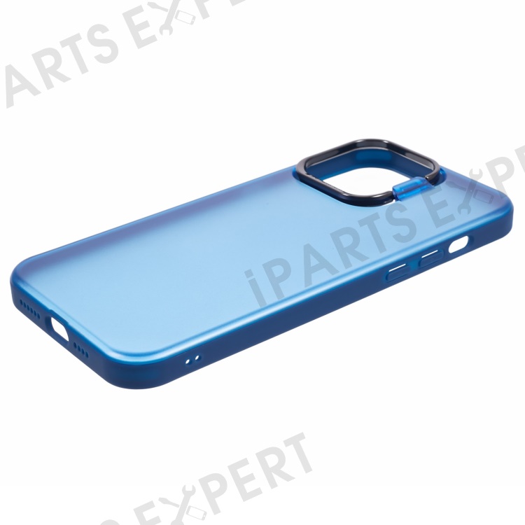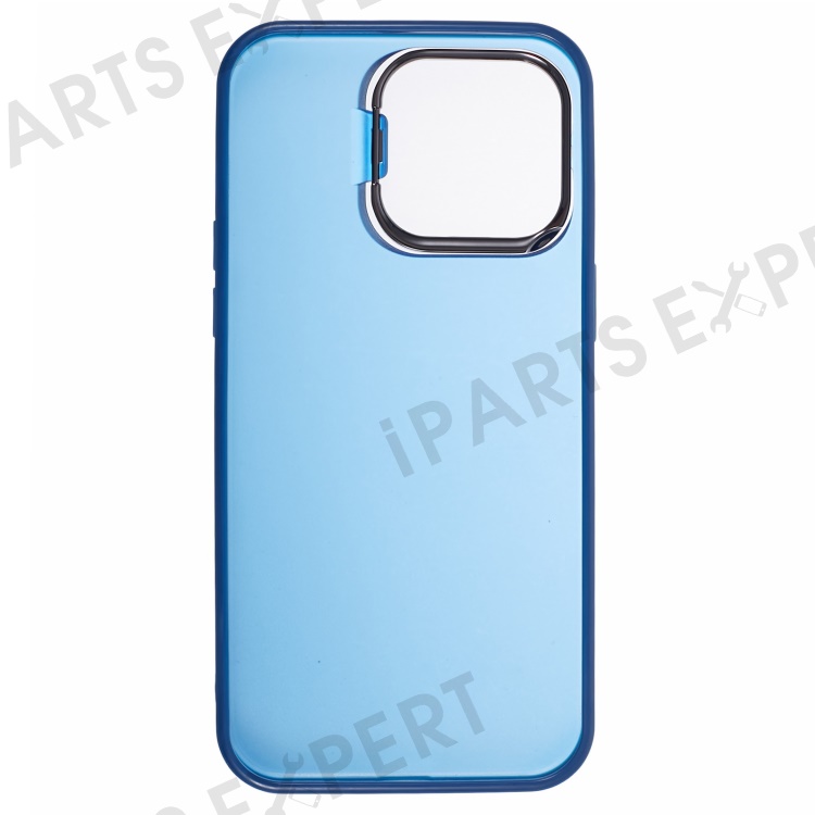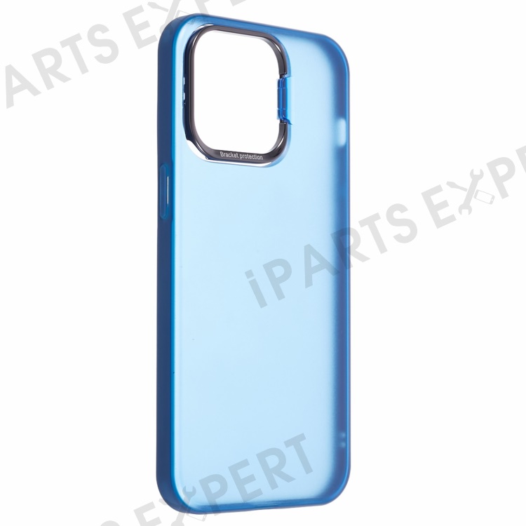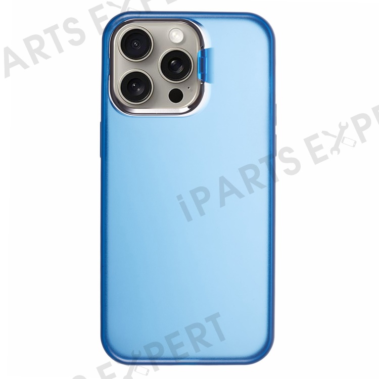 For iPhone 15 Pro Hybrid PC+TPU Matte Phone Case Lens Frame Kickstand Shockproof Cover - Transparent Blue