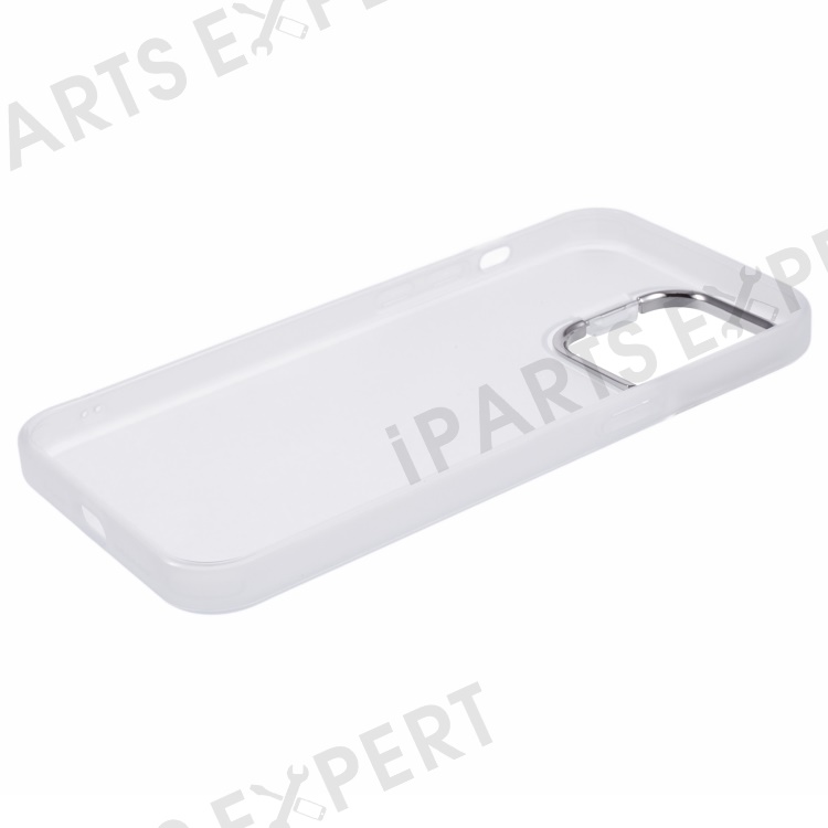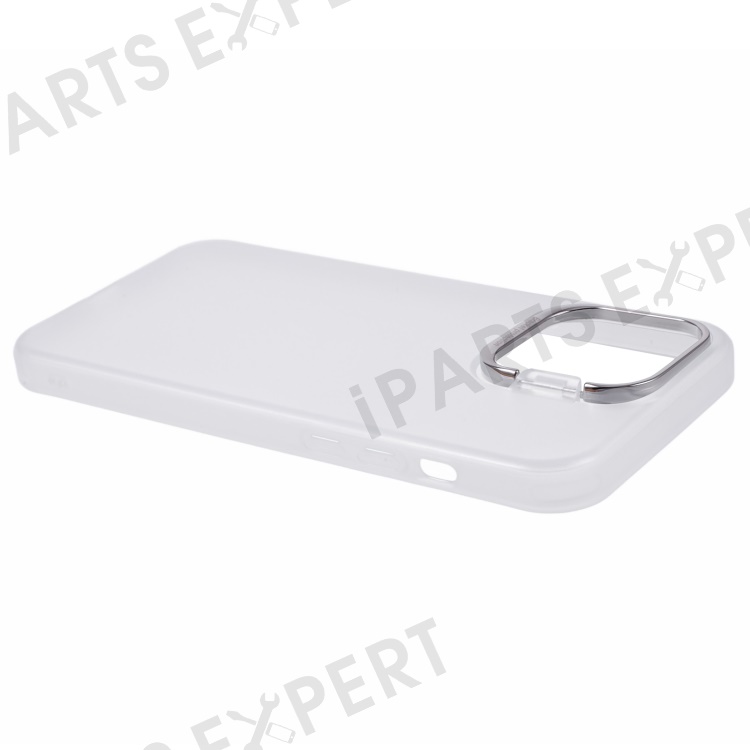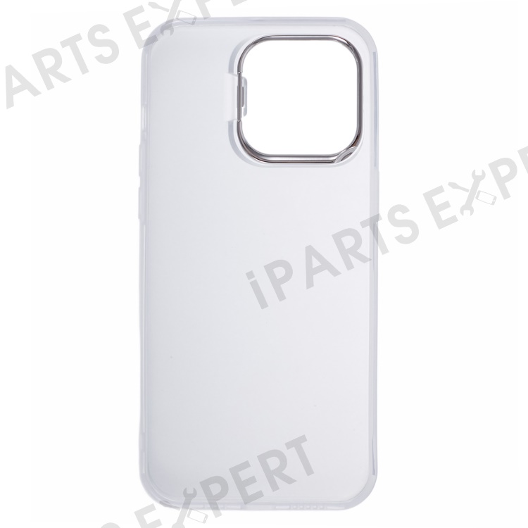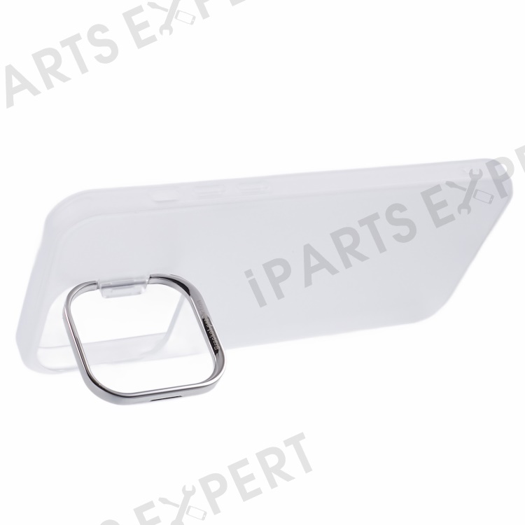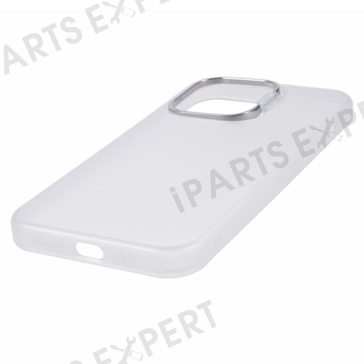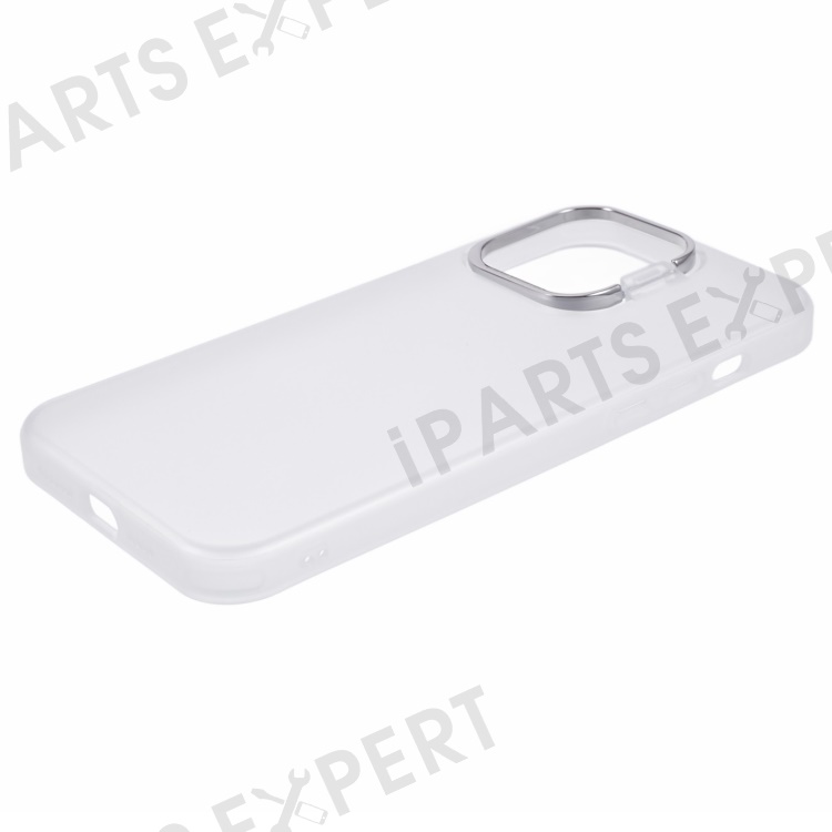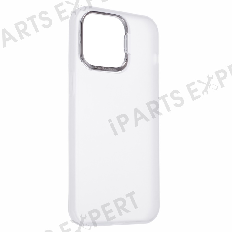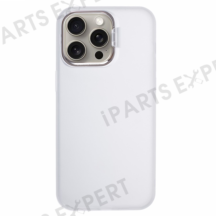 For iPhone 15 Pro Hybrid PC+TPU Matte Phone Case Lens Frame Kickstand Shockproof Cover - Transparent