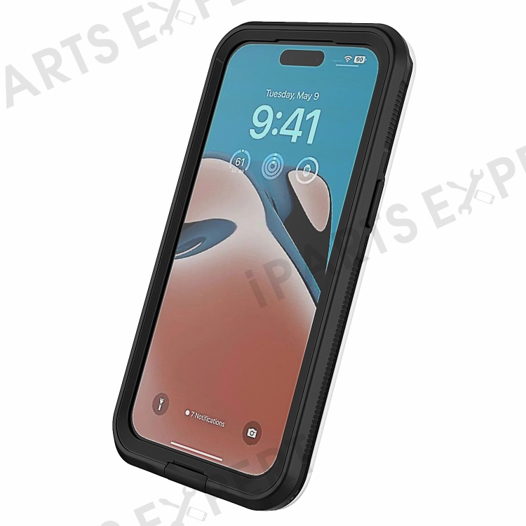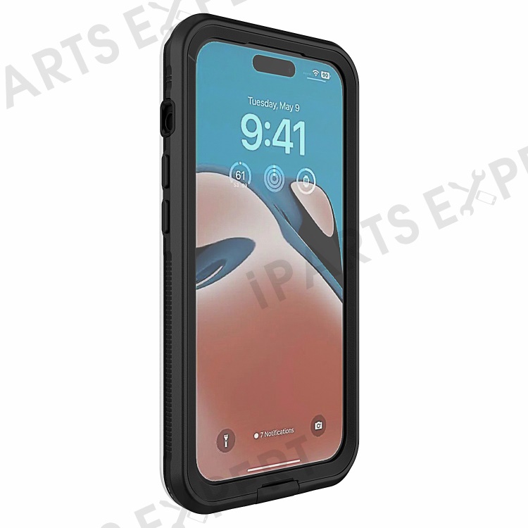 For iPhone 15 Pro IP68 Waterproof Phone Case Fall Protection PC+Neoprene Cellphone Shell - Transparent Black