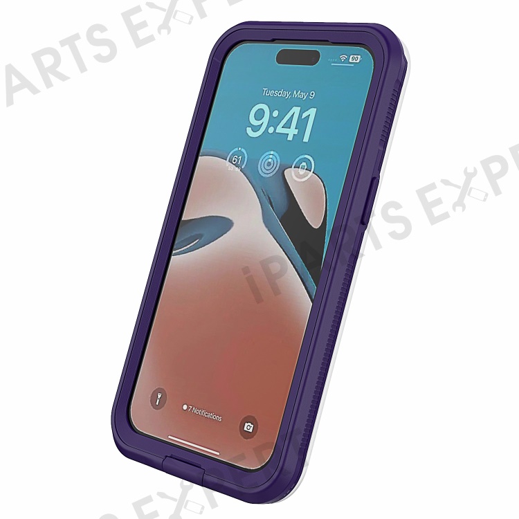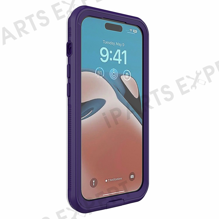 For iPhone 15 Pro IP68 Waterproof Phone Case Fall Protection PC+Neoprene Cellphone Shell - Transparent Purple