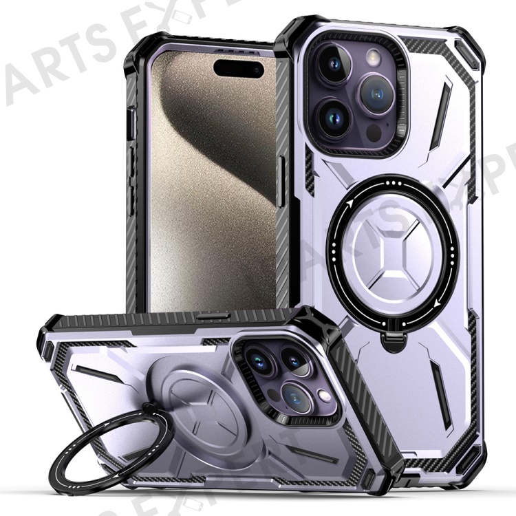 For iPhone 15 Pro Magnetic Phone Case Kickstand Shock-Absorption Cover - Light Purple