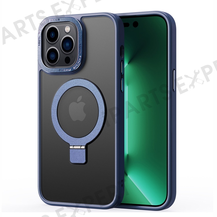 For iPhone 15 Pro Magnetic Phone Case TPU+PC Kickstand Matte Cover Compatible with MagSafe - Sapphire