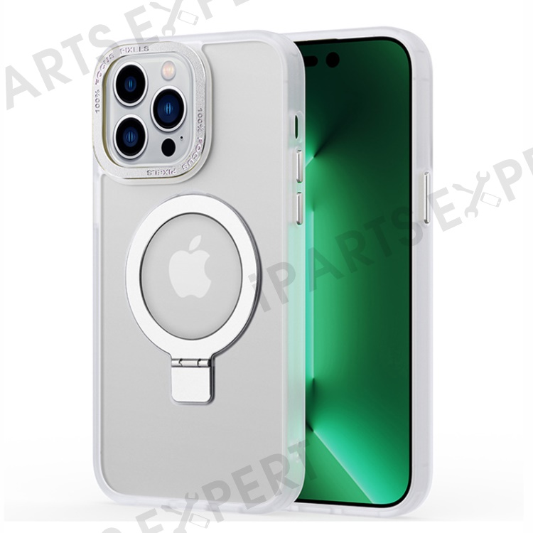 For iPhone 15 Pro Magnetic Phone Case TPU+PC Kickstand Matte Cover Compatible with MagSafe - White