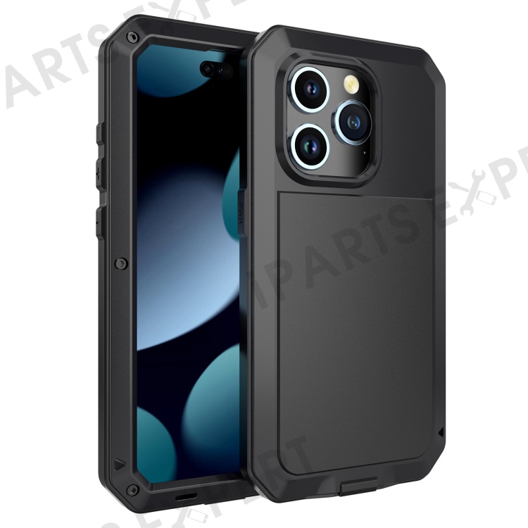 For iPhone 15 Pro Max Anti-drop Phone Case Silicone+PC+Metal Cover with Tempered Glass Film - Black