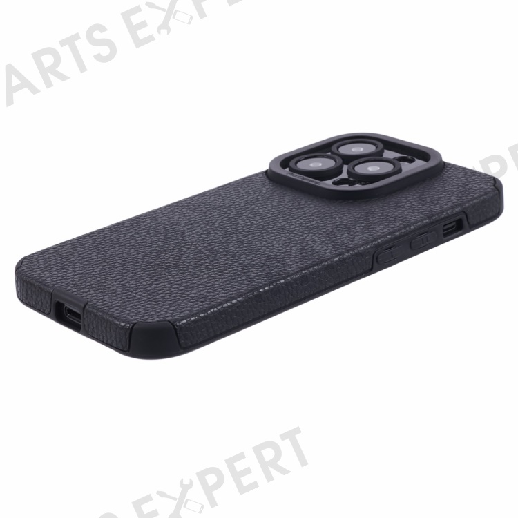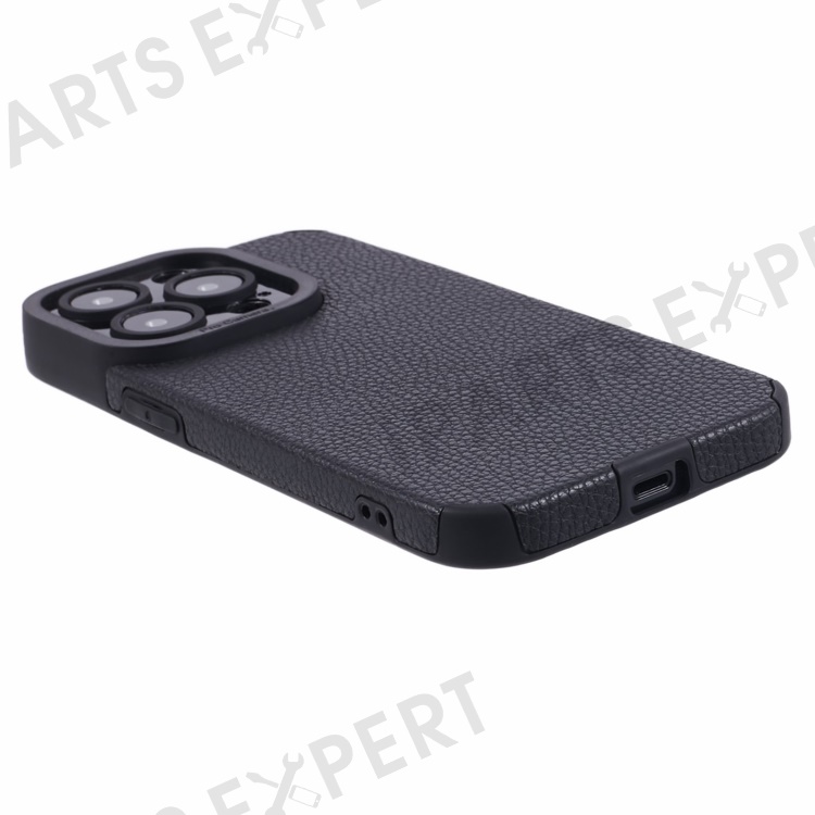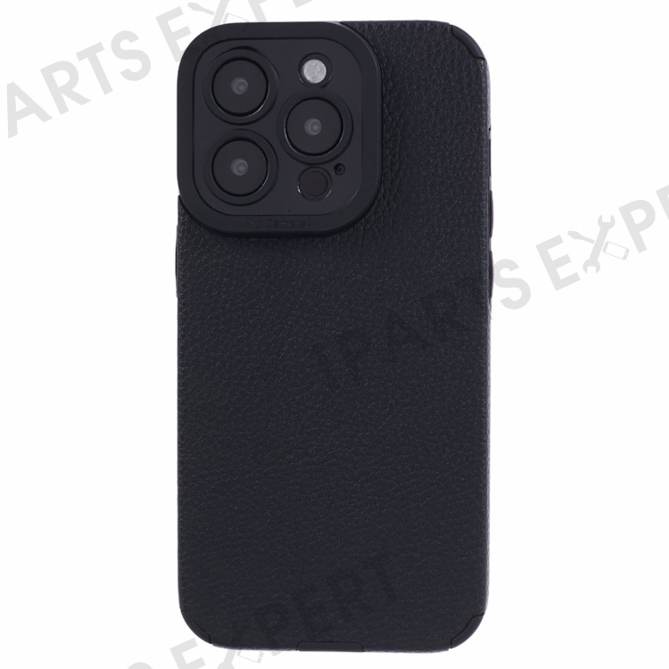 For iPhone 15 Pro Max Case Anti-fingerprint Leather Coated TPU Phone Cover - Black