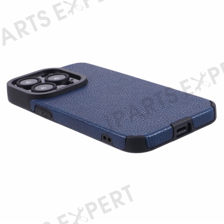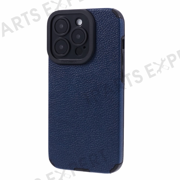 For iPhone 15 Pro Max Case Anti-fingerprint Leather Coated TPU Phone Cover - Blue