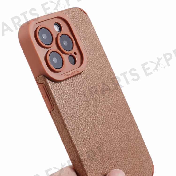 For iPhone 15 Pro Max Case Anti-fingerprint Leather Coated TPU Phone Cover - Brown