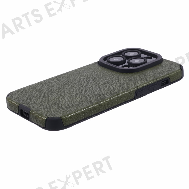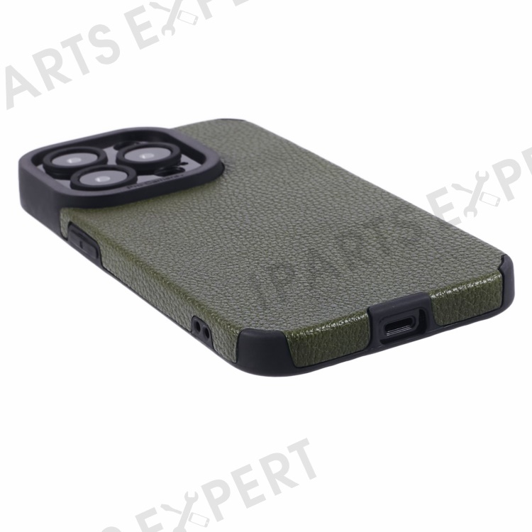For iPhone 15 Pro Max Case Anti-fingerprint Leather Coated TPU Phone Cover - Green