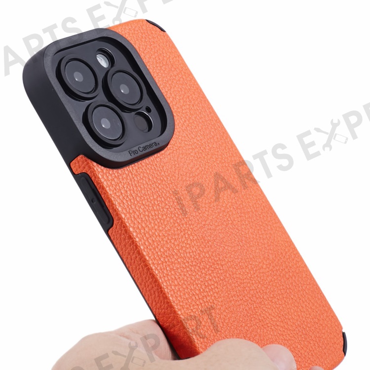 For iPhone 15 Pro Max Case Anti-fingerprint Leather Coated TPU Phone Cover - Orange