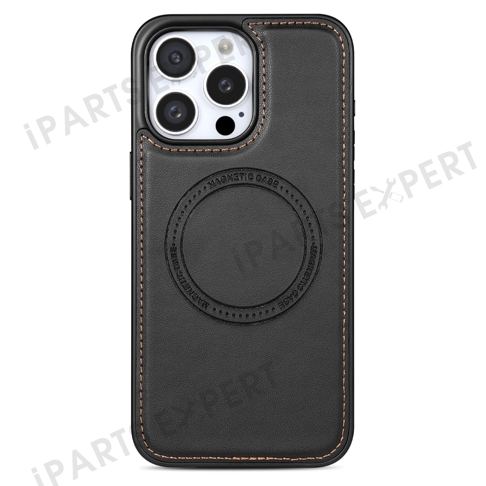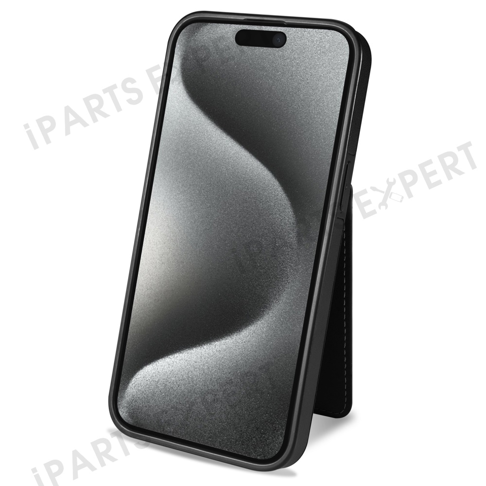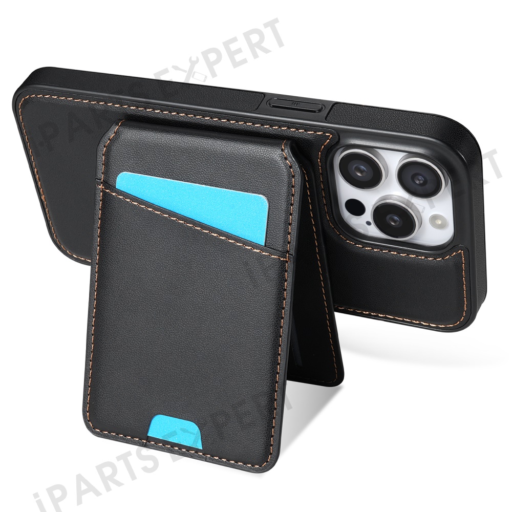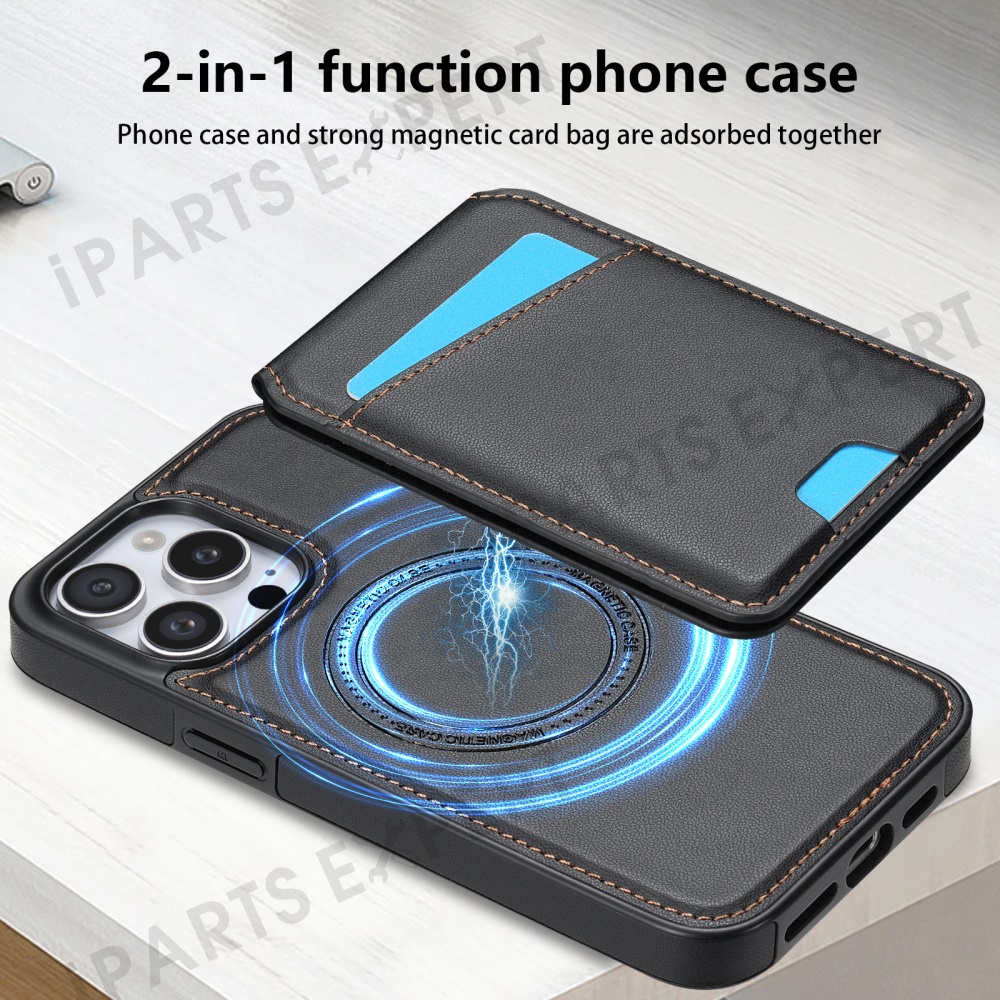 For iPhone 15 Pro Max Case Compatible with MagSafe Detachable Card Holder Kickstand Leather Phone Back Cover - Black