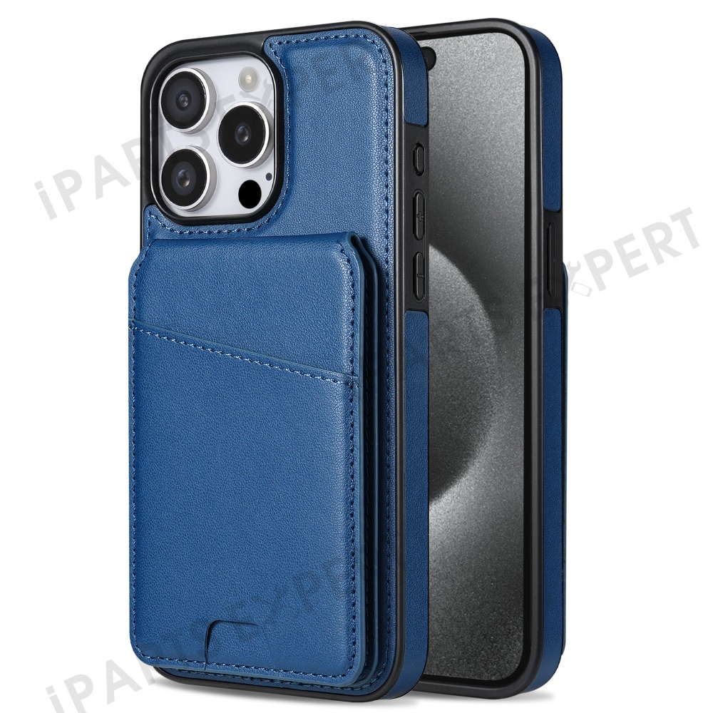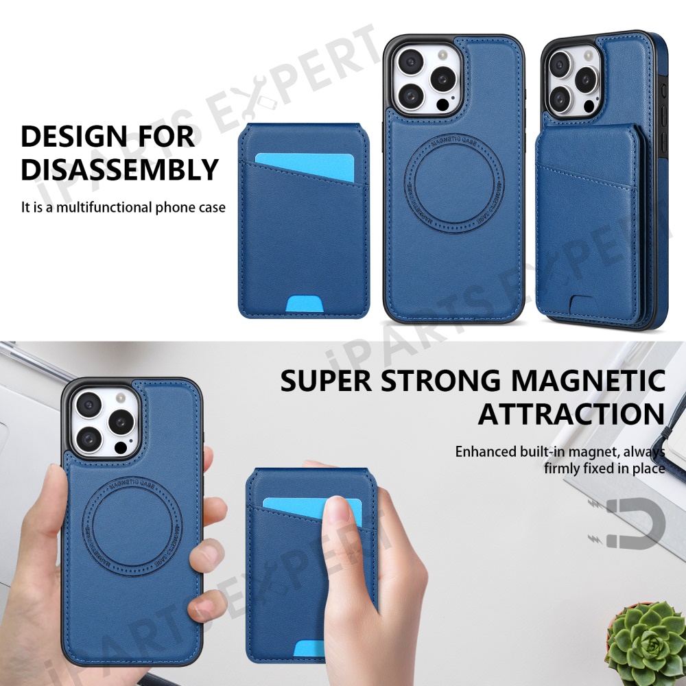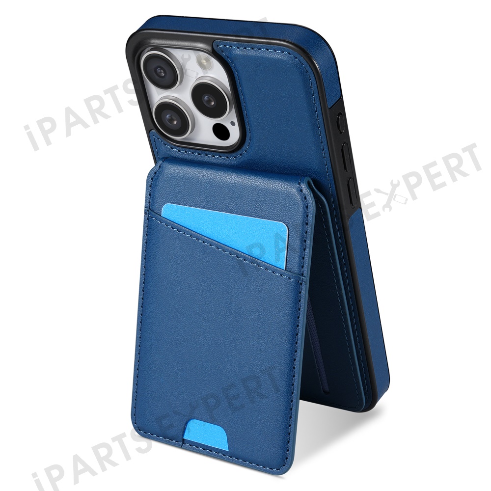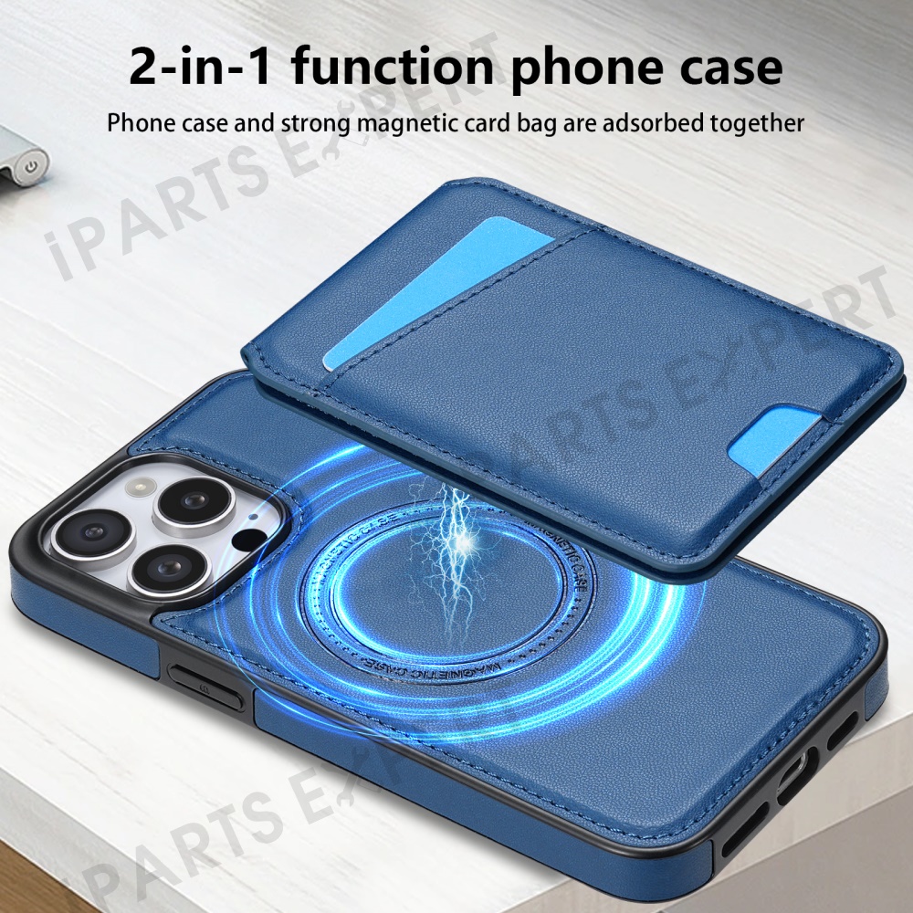 For iPhone 15 Pro Max Case Compatible with MagSafe Detachable Card Holder Kickstand Leather Phone Back Cover - Blue