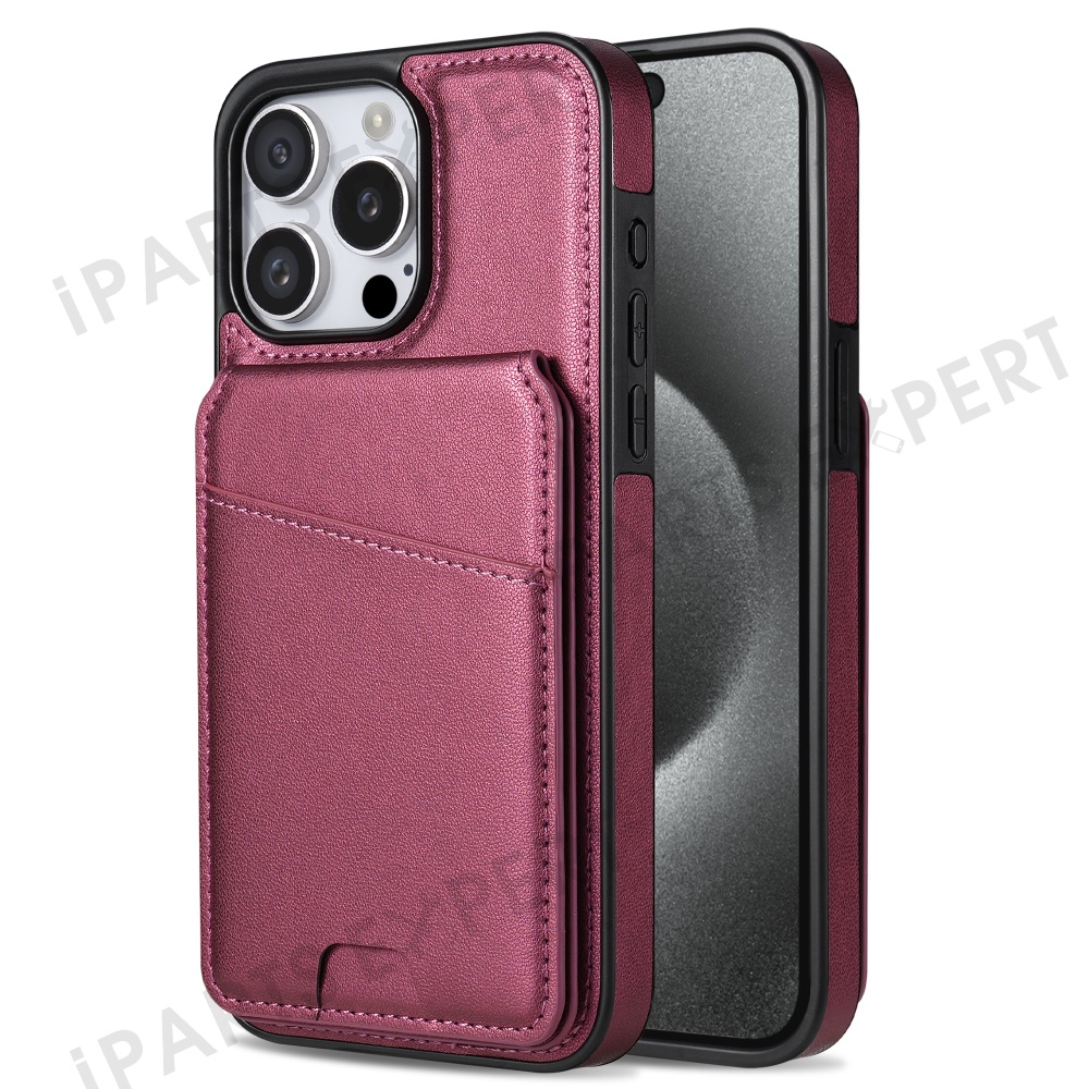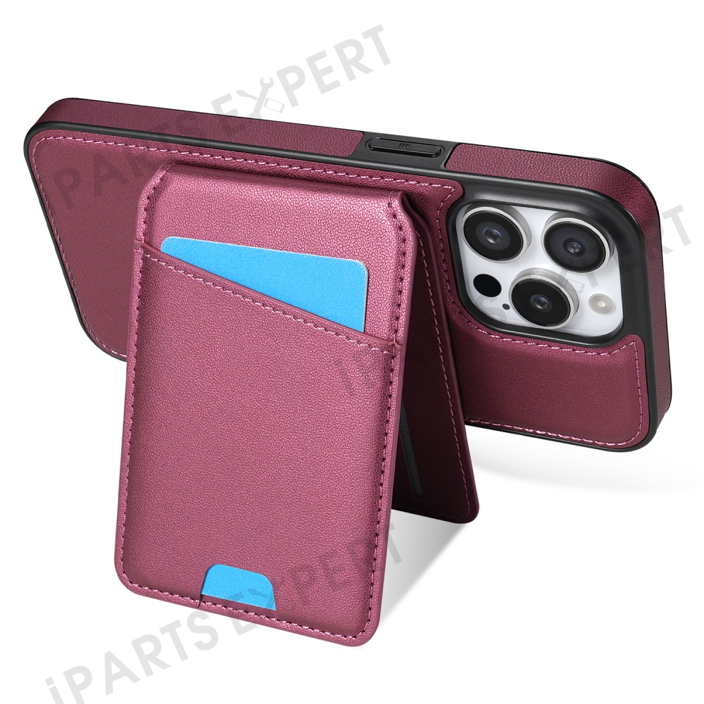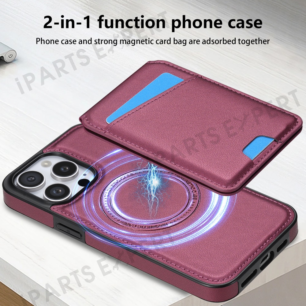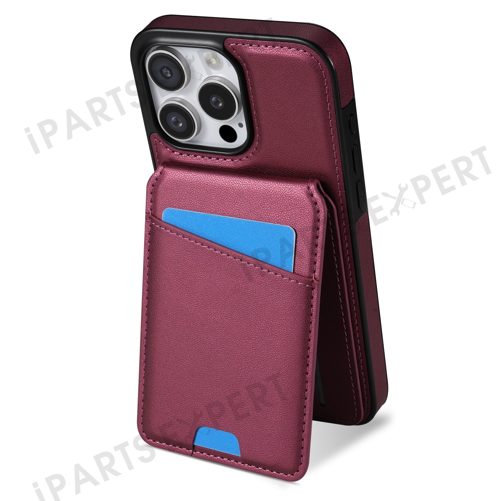 For iPhone 15 Pro Max Case Compatible with MagSafe Detachable Card Holder Kickstand Leather Phone Back Cover - Red