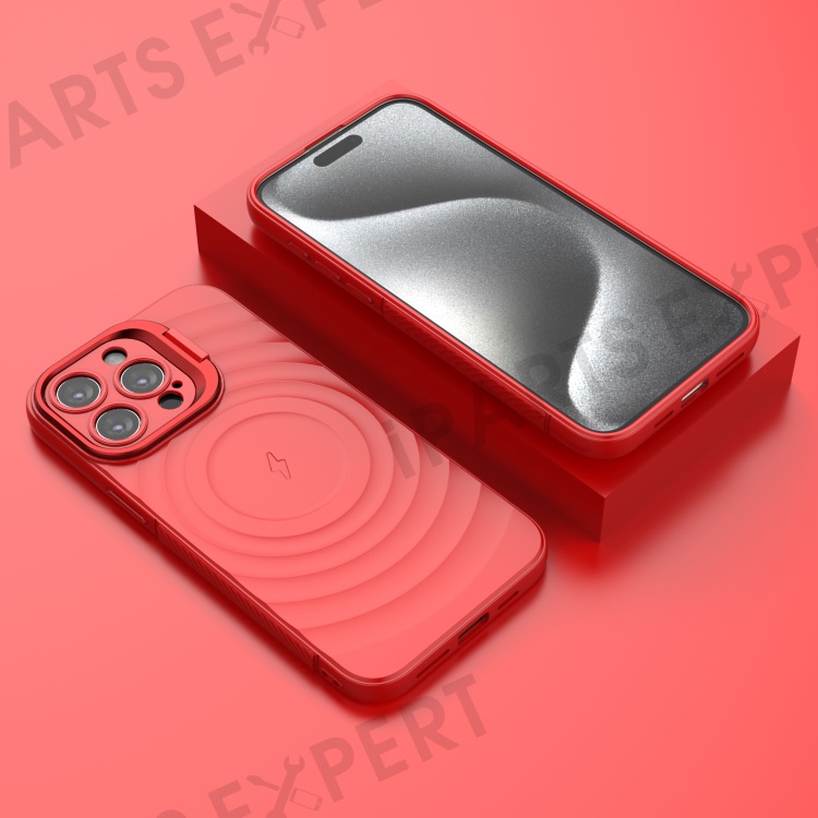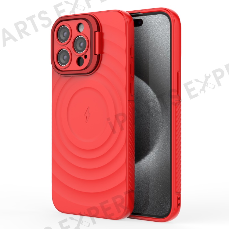 For iPhone 15 Pro Max Case Compatible with MagSafe PC Kickstand Soft TPU Phone Cover Ripple Texture - Red