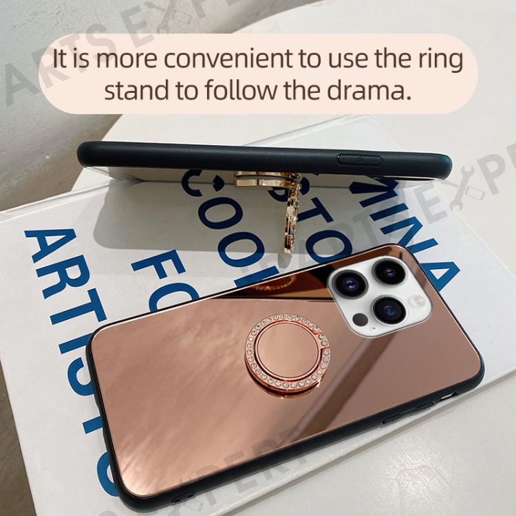 - A rhinestone decorated ring kickstand can support the phone horizontally for hands-free viewing, one hand operating is unobstructed