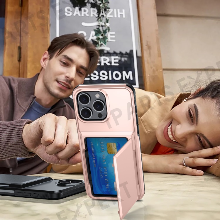 For iPhone 15 Pro Max Cases Card Slot TPU+PC Kickstand Phone Case - Grey