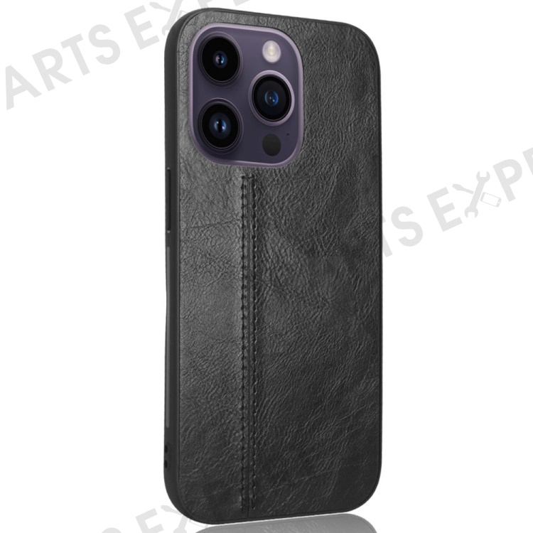 For iPhone 15 Pro Max Drop-proof Phone Cover Stitching Line PU Leather+PC+TPU Case - Black