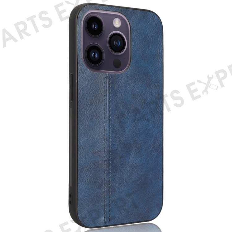 For iPhone 15 Pro Max Drop-proof Phone Cover Stitching Line PU Leather+PC+TPU Case - Blue