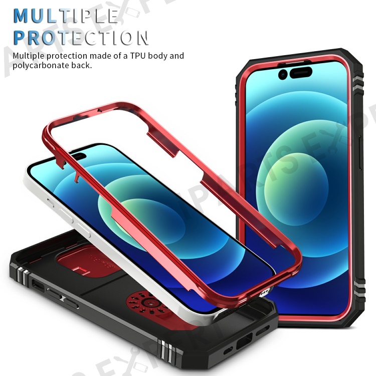 For iPhone 15 Pro Max Kickstand Case Card Holder PC+TPU Phone Cover with Sliding Camera Protection - Red+Black