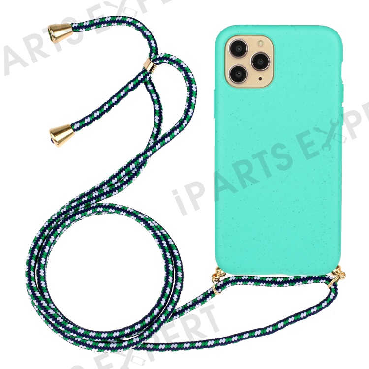 For iPhone 15 Pro Max Mobile Phone Case Biodegradable Wheat Straw+TPU Protection Cover with Lanyard - Sky Blue