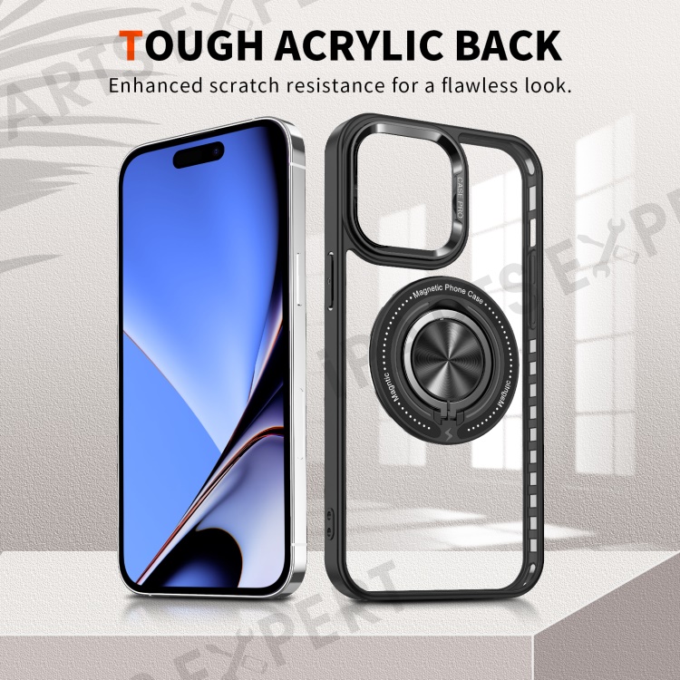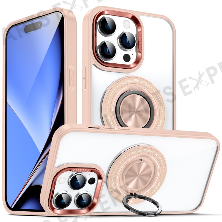 For iPhone 15 Pro Max PC + TPU + Acrylic Phone Case Ring Kickstand Transparent Cover Compatible with MagSafe - Pink