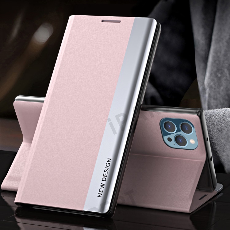 For iPhone 15 Pro Max PU Leather Electroplated Cover Anti-drop Stand Phone Case - Pink