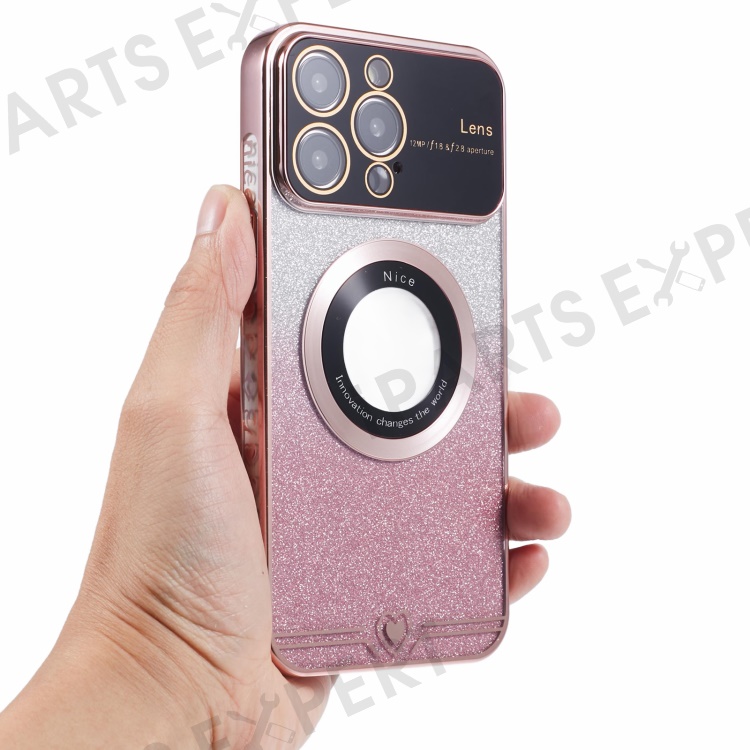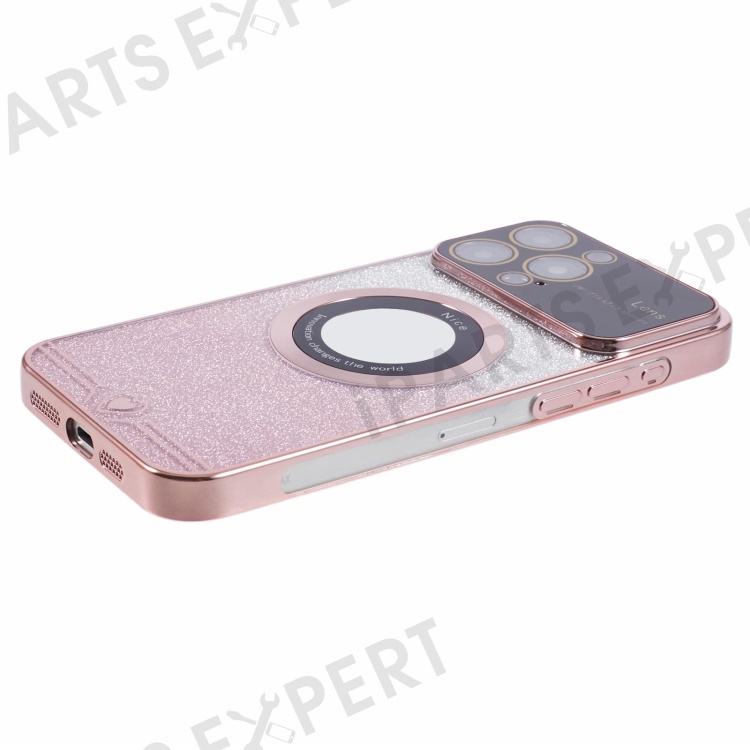 For iPhone 15 Pro Max Slim TPU Case Compatible with MagSafe Electroplating Phone Shell - Pink