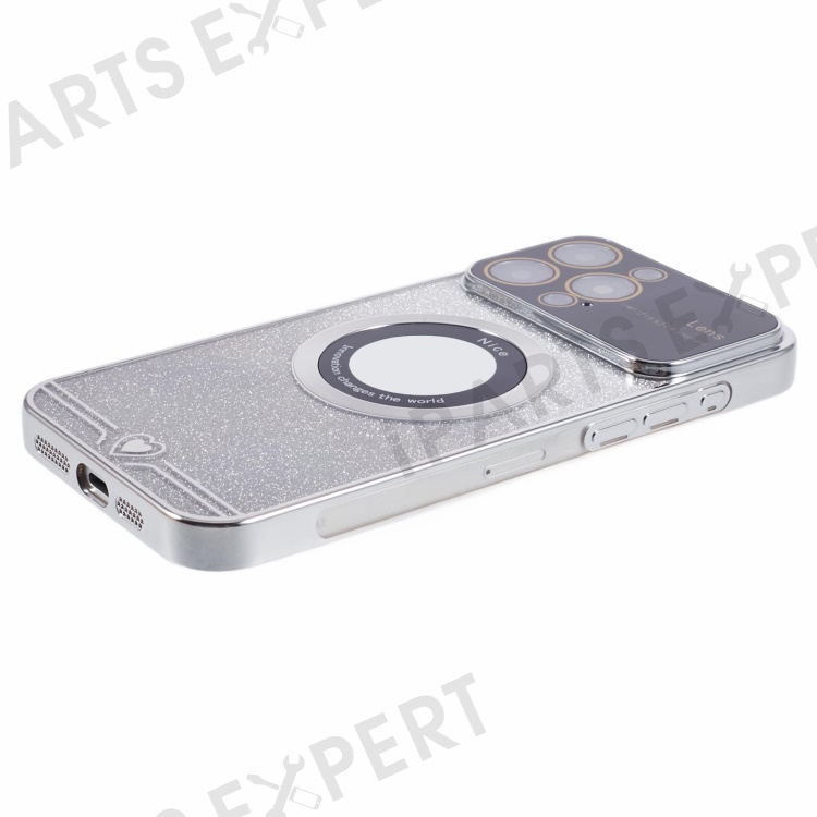For iPhone 15 Pro Max Slim TPU Case Compatible with MagSafe Electroplating Phone Shell - Silver