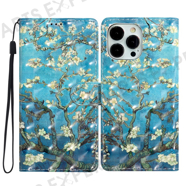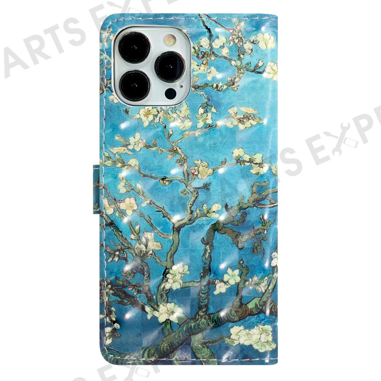 For iPhone 15 Pro Max Wallet Phone Case 3D Pattern PU Leather Magnetic Protective Cover - Apricot Blossom