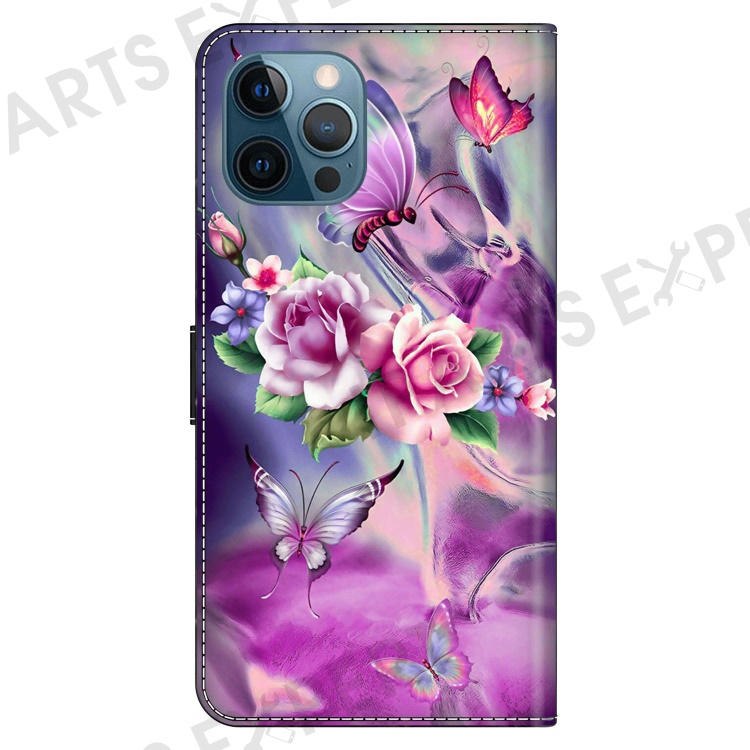 For iPhone 15 Pro PU Leather Phone Case 3D Pattern Printing Wallet Stand Protective Cover - Butterflies / Flowers