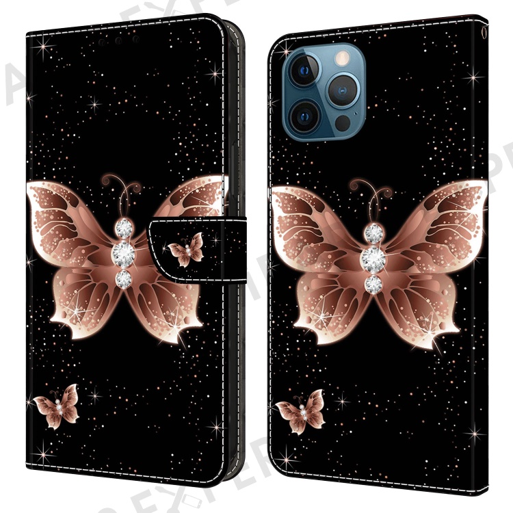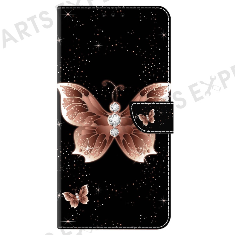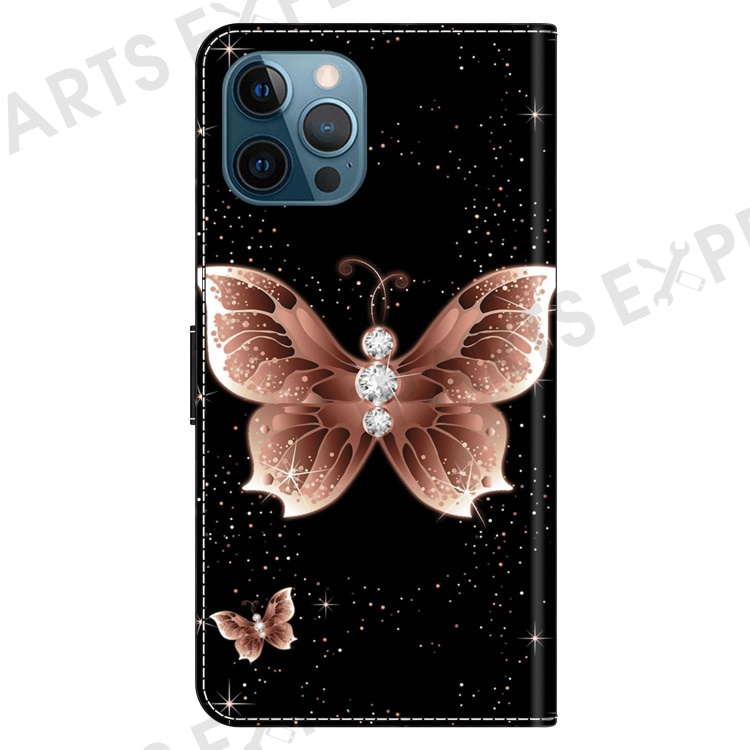 For iPhone 15 Pro PU Leather Phone Case 3D Pattern Printing Wallet Stand Protective Cover - Pink Diamond Butterfly