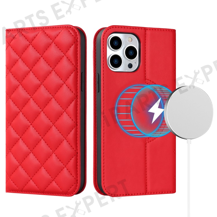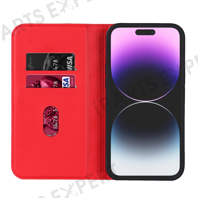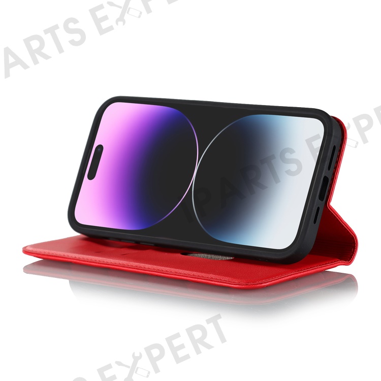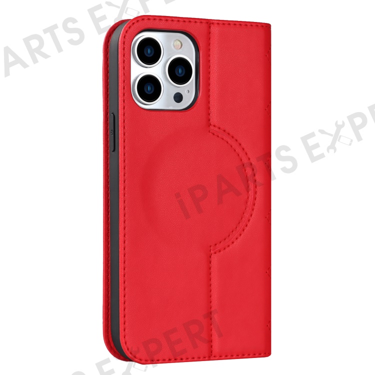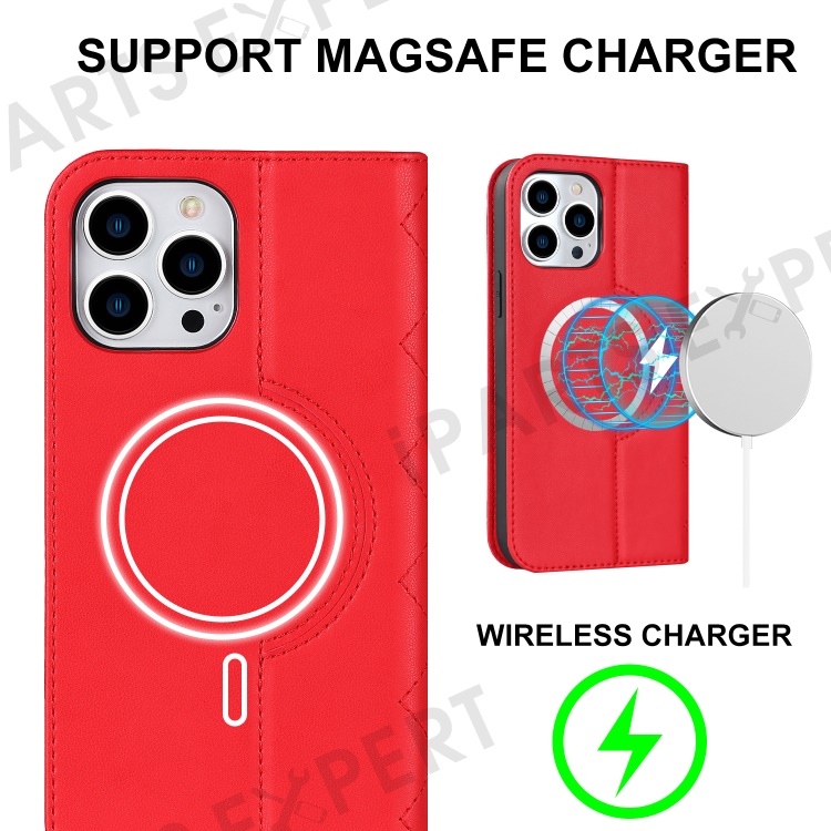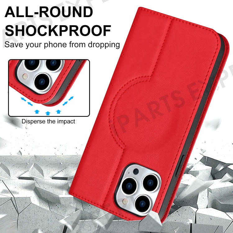 For iPhone 15 Pro PU Leather Stand Cover Card Holder RFID Blocking Phone Case Compatible with Magsafe - Red