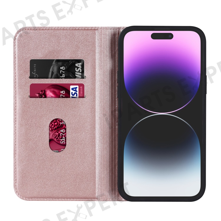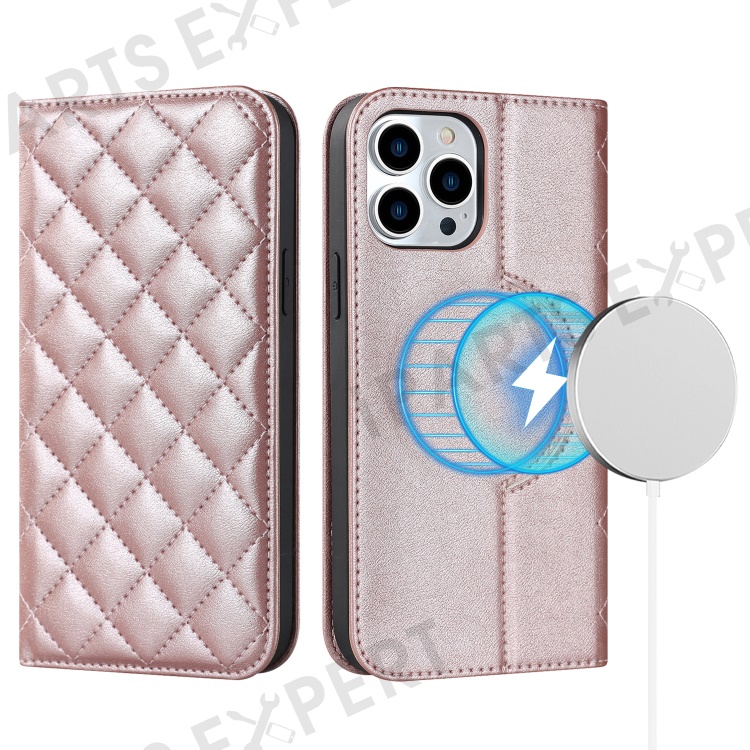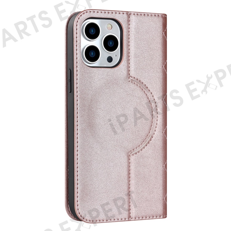 For iPhone 15 Pro PU Leather Stand Cover Card Holder RFID Blocking Phone Case Compatible with Magsafe - Rose Gold