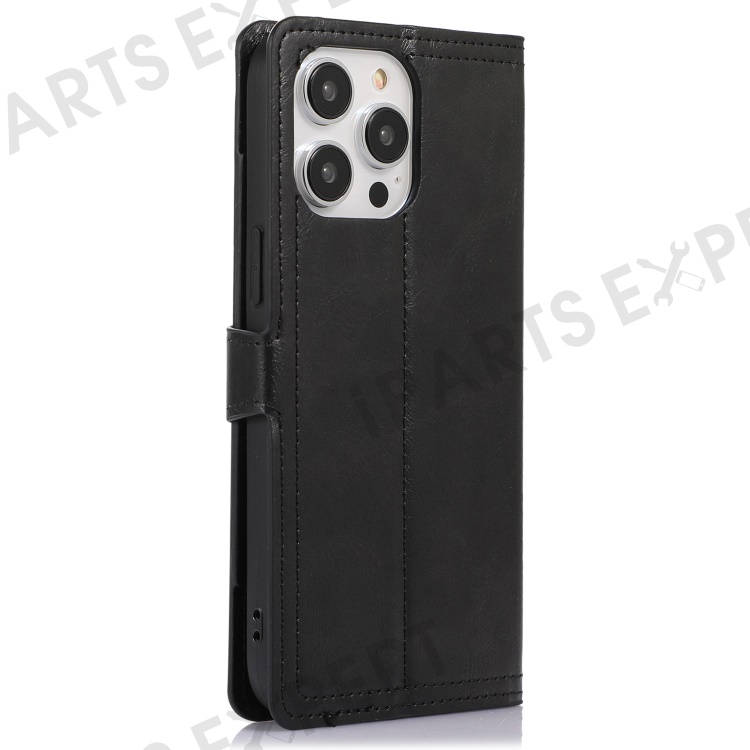 For iPhone 15 Pro Shockproof PU Leather Case Wallet Zipper Pocket Flip Stand Phone Cover - Black