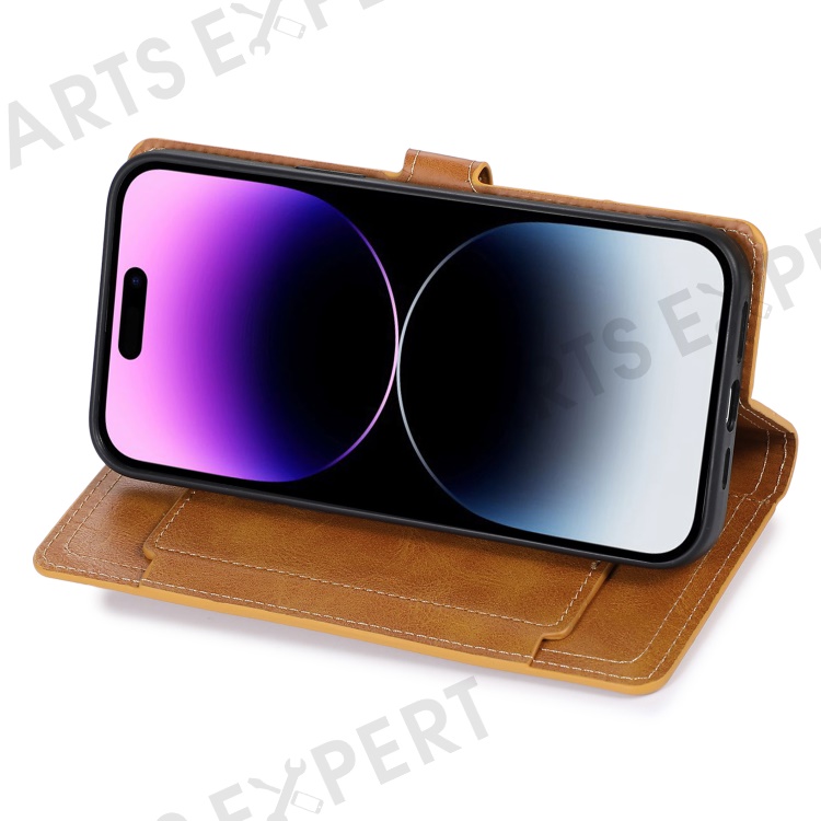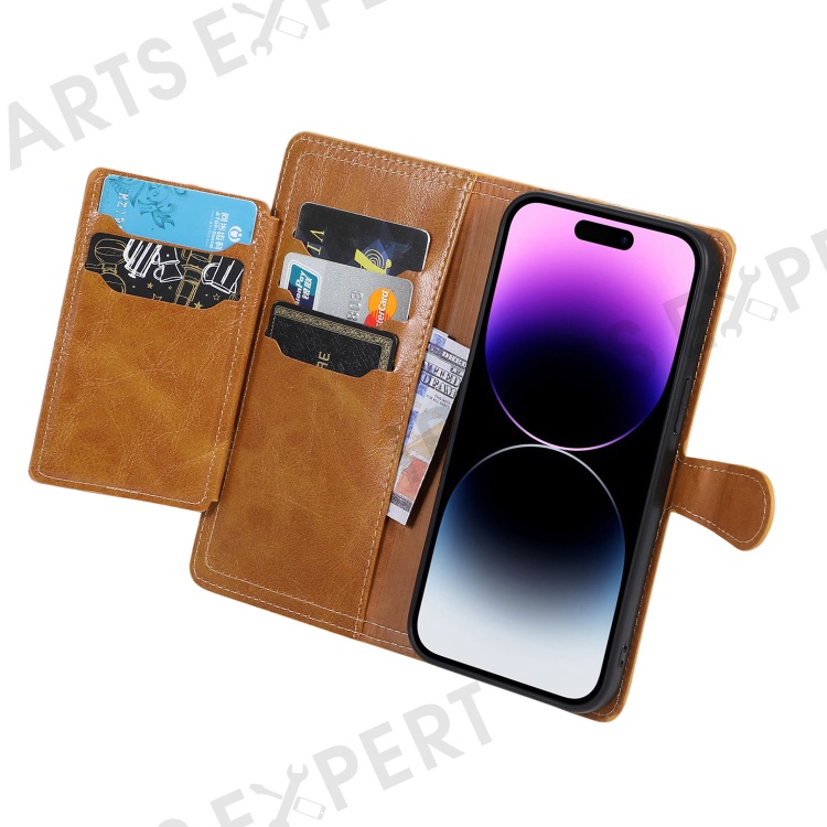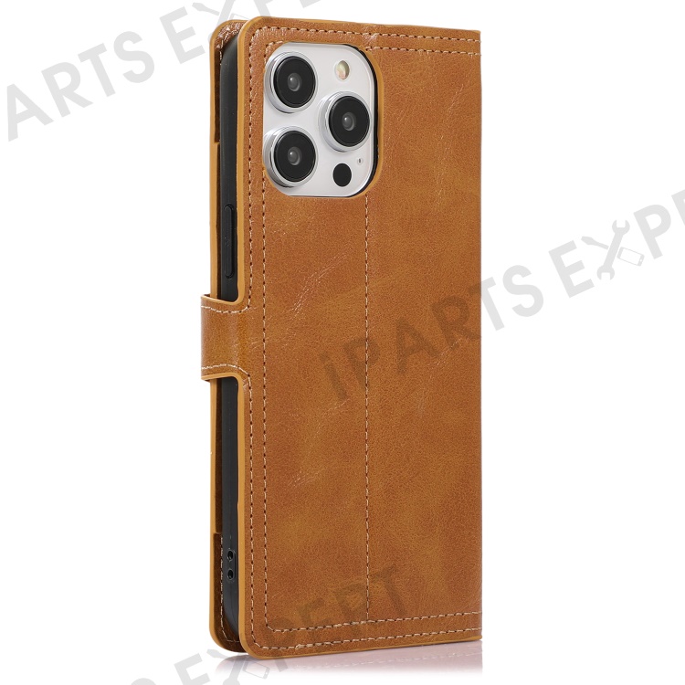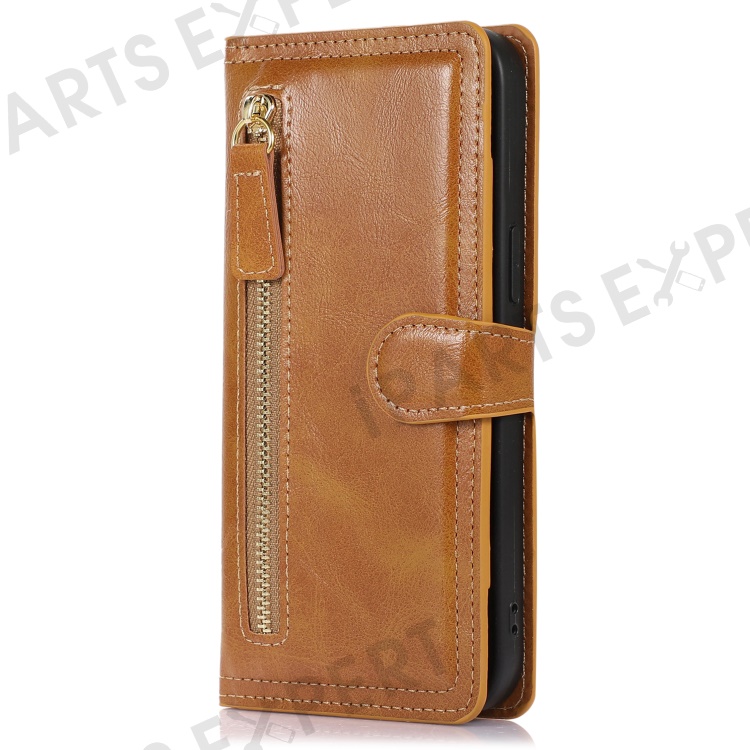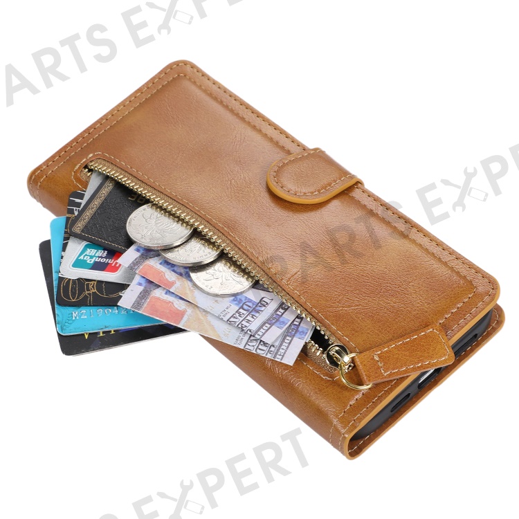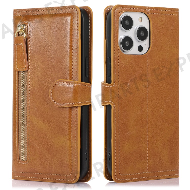 For iPhone 15 Pro Shockproof PU Leather Case Wallet Zipper Pocket Flip Stand Phone Cover - Orange
