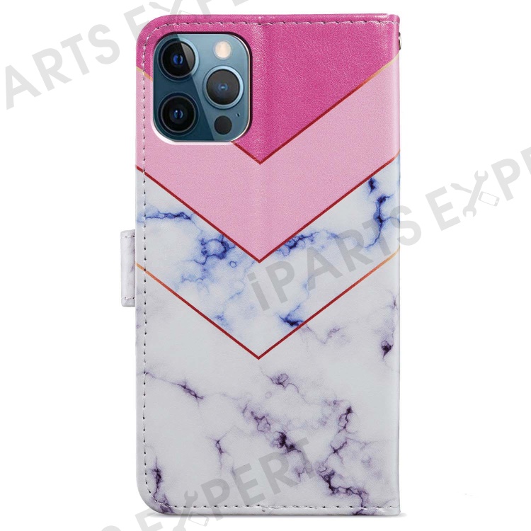 For iPhone 15 Pro Stand Phone Case Pattern Printing PU Leather Wallet Cover with Strap - Smoke Marble