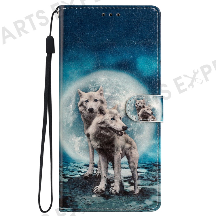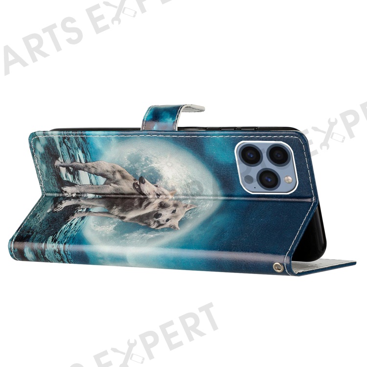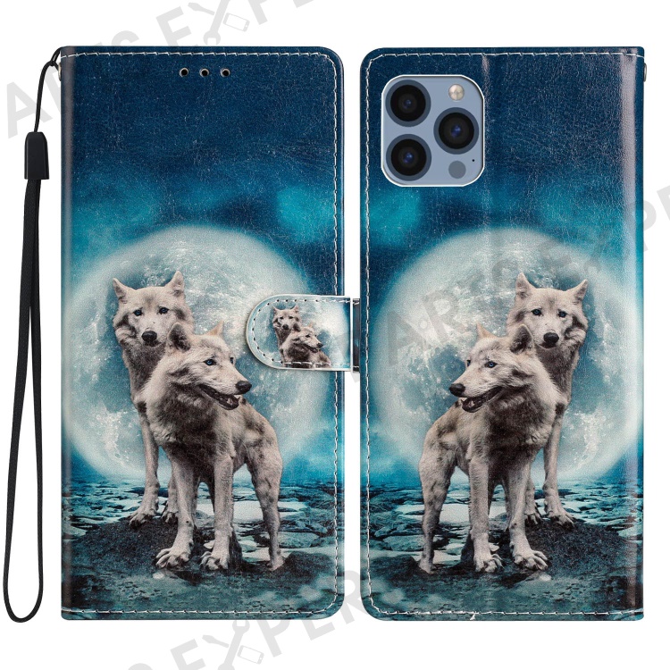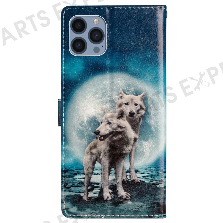 For iPhone 15 Pro Stand Phone Case Pattern Printing PU Leather Wallet Cover with Strap - Two Wolves