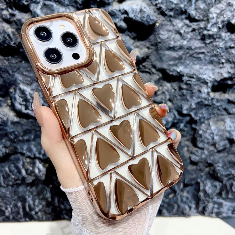 For iPhone 15 Pro TPU Phone Case Electroplating 3D Love Heart Shape Cover - Gold