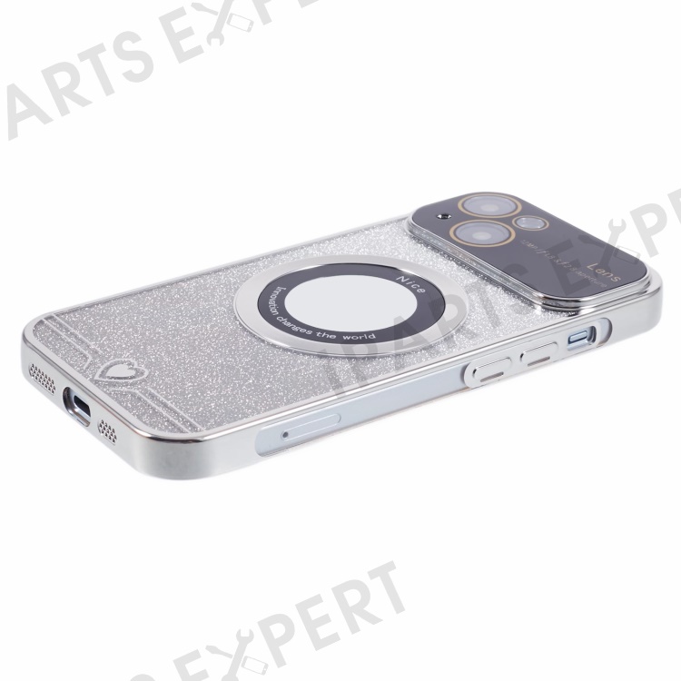 For iPhone 15 TPU Shockproof Case Electroplated Slim Phone Cover Compatible with MagSafe - Silver