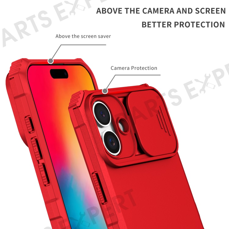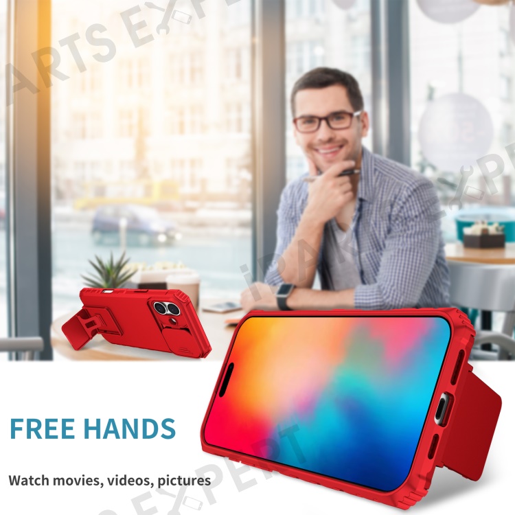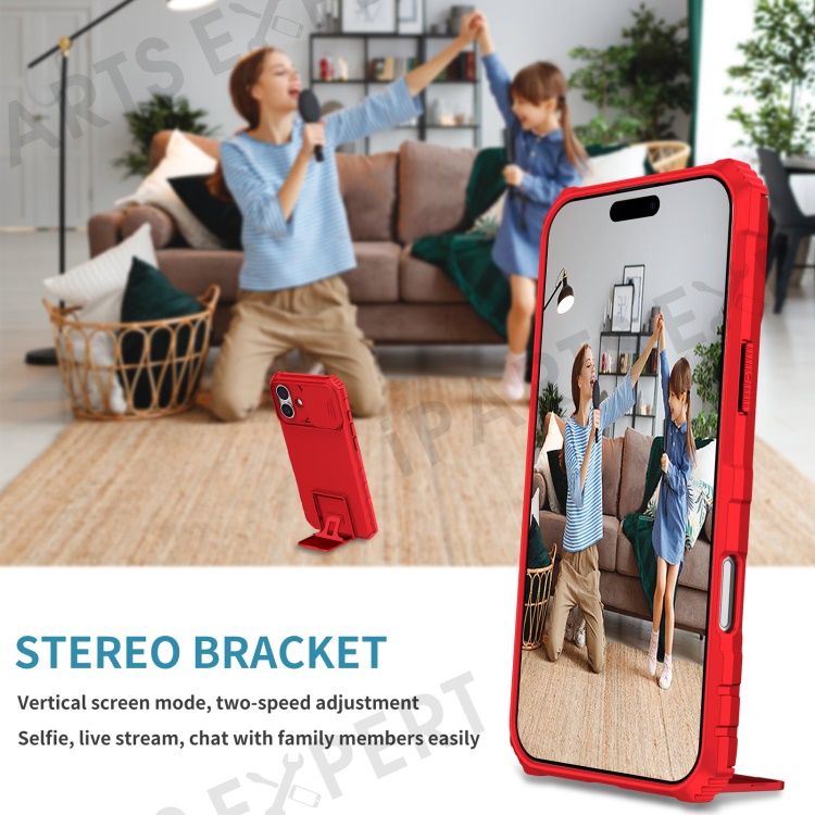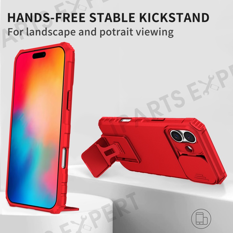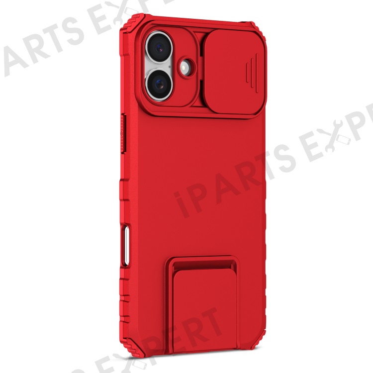 For iPhone 16 Case Camera Slider PC + TPU Phone Cover with Kickstand - Red