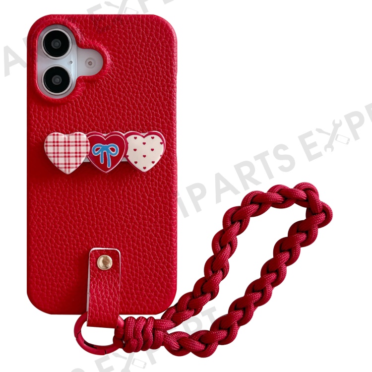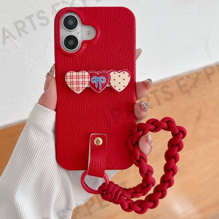 For iPhone 16 Case Christmas Design PU+PC Phone Back Cover with Heart Kickstand, Strap