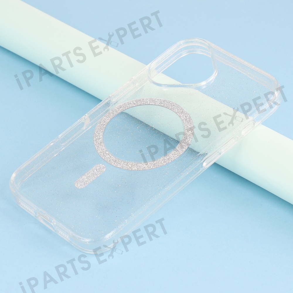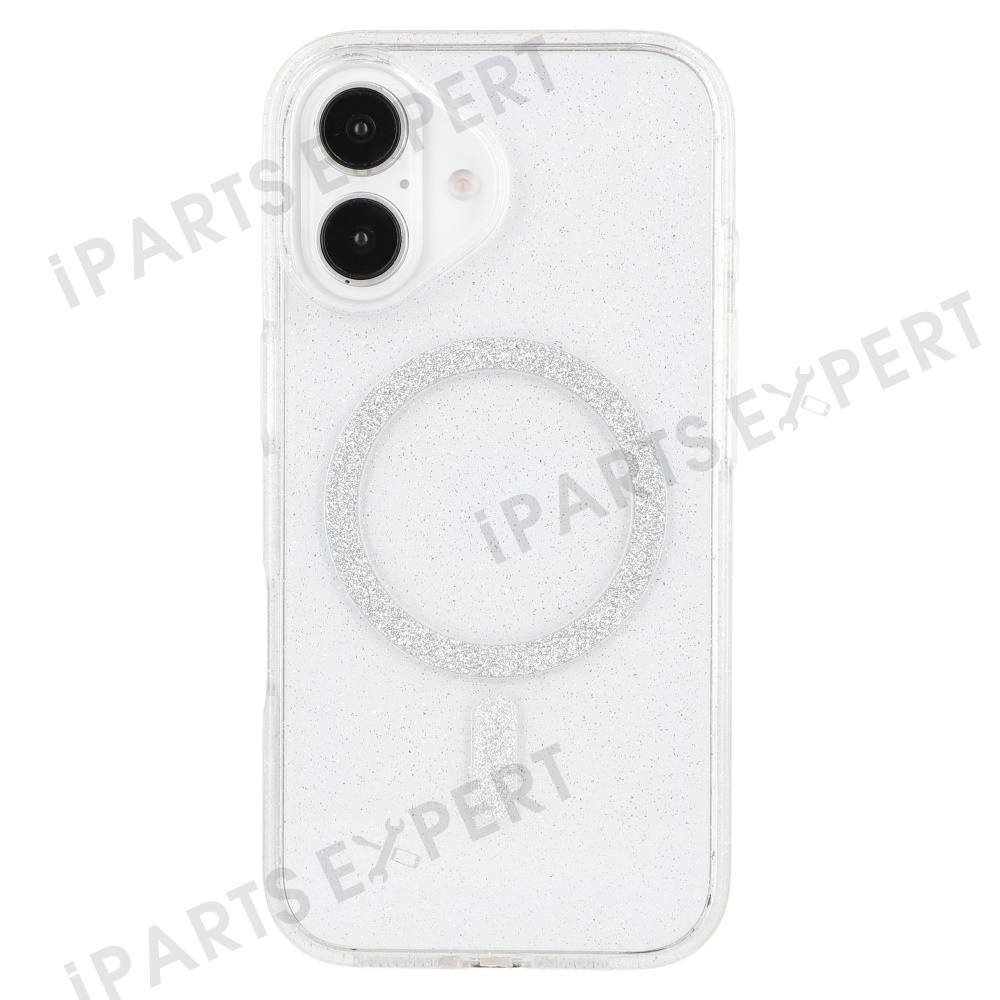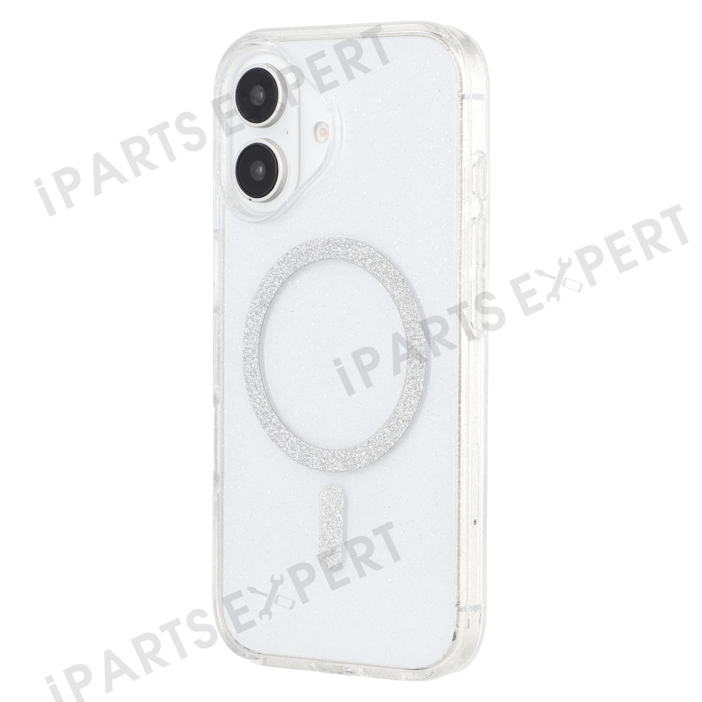 For iPhone 16 Case Compatible with MagSafe 2.0mm PC + TPU Glitter Phone Cover - Transparent