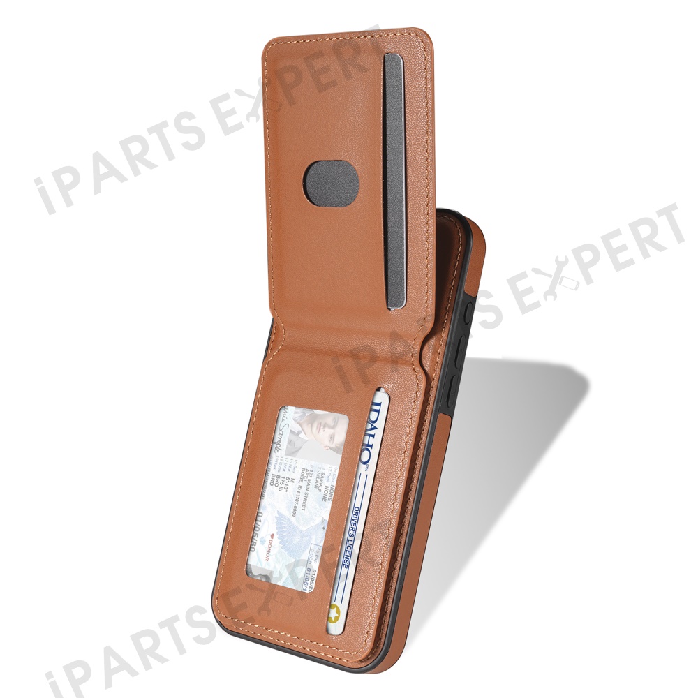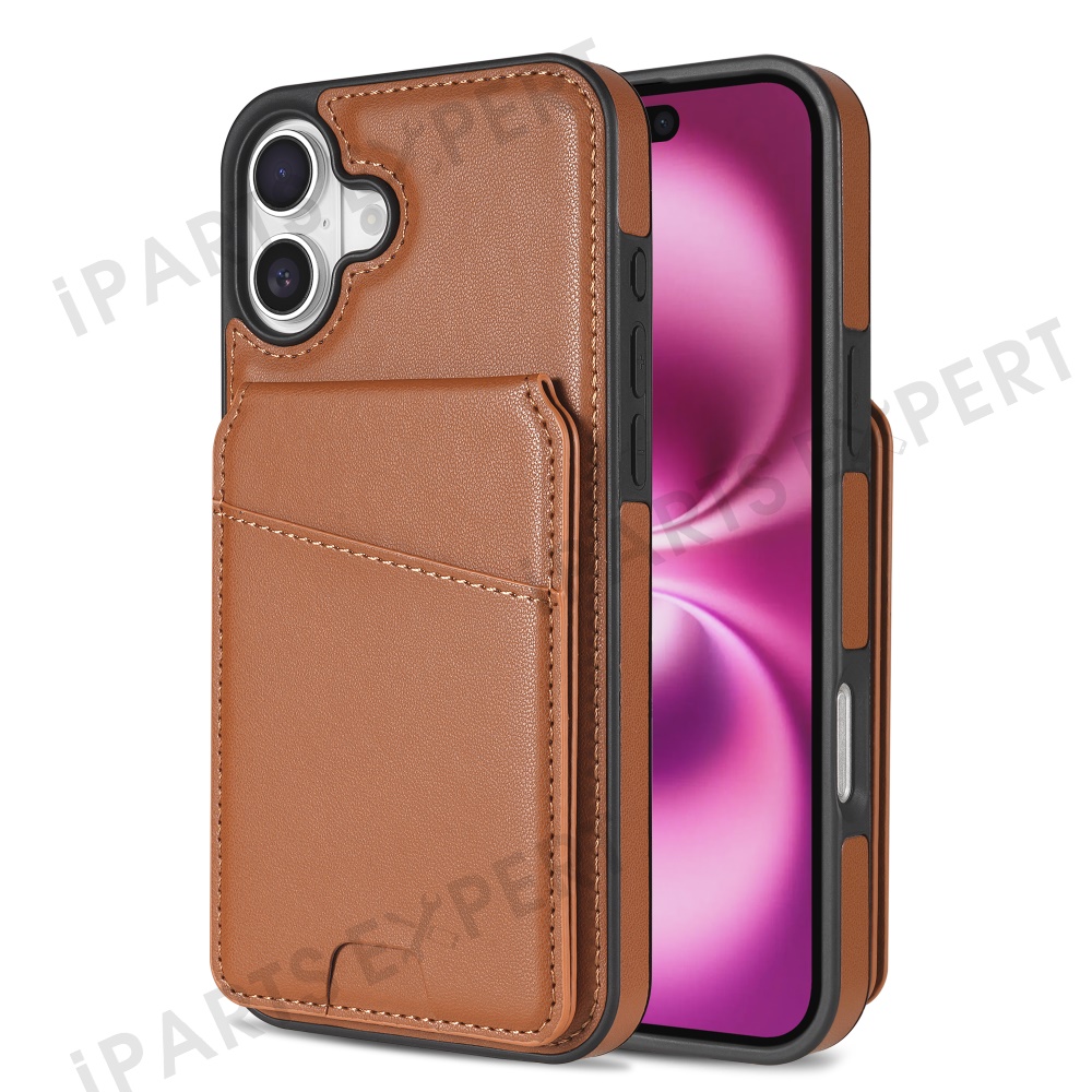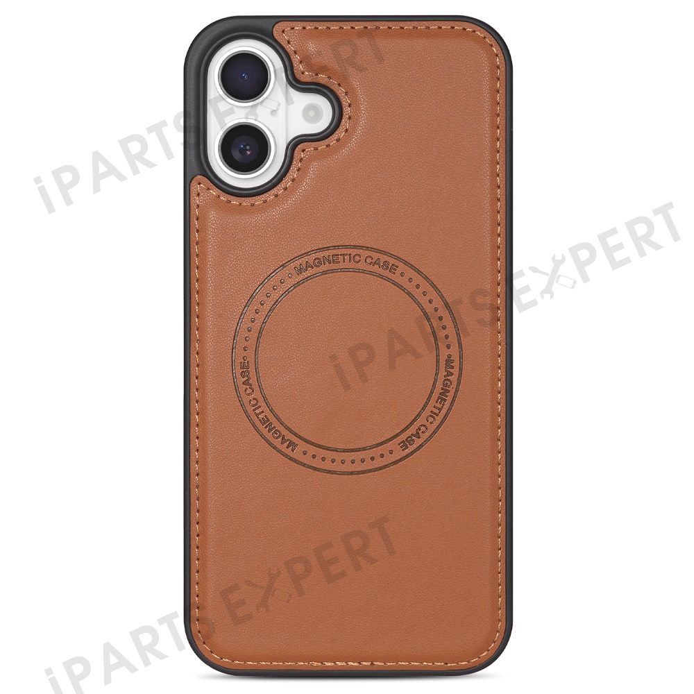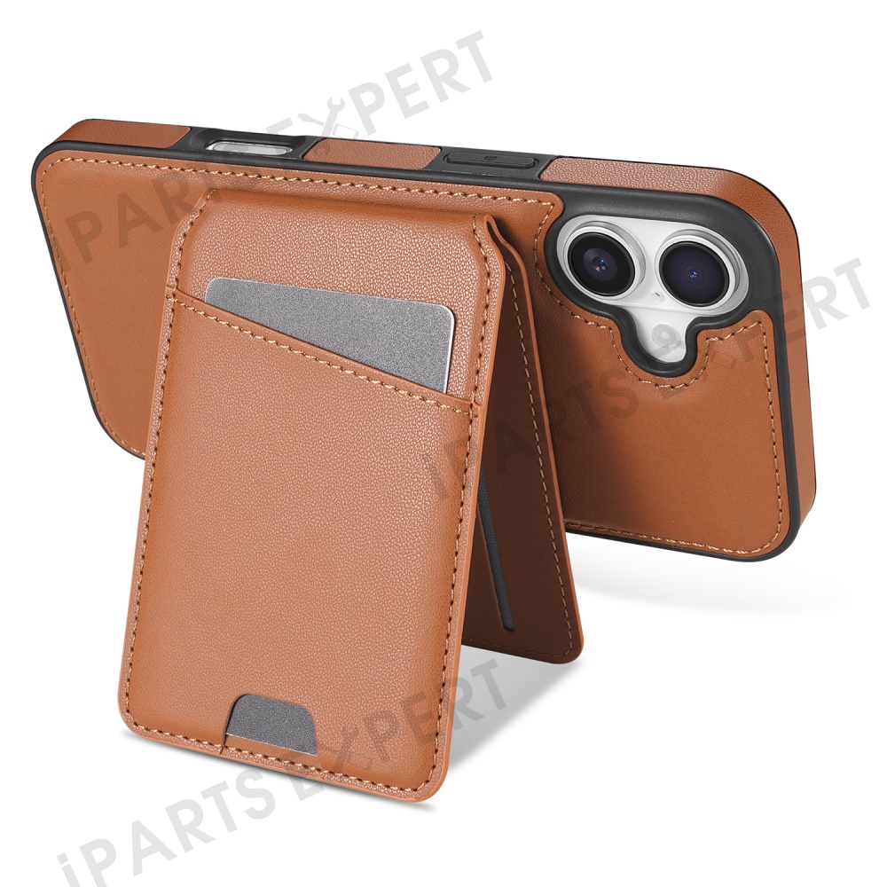 For iPhone 16 Case Compatible with MagSafe Detachable Card Holder Kickstand Leather Phone Back Cover - Brown