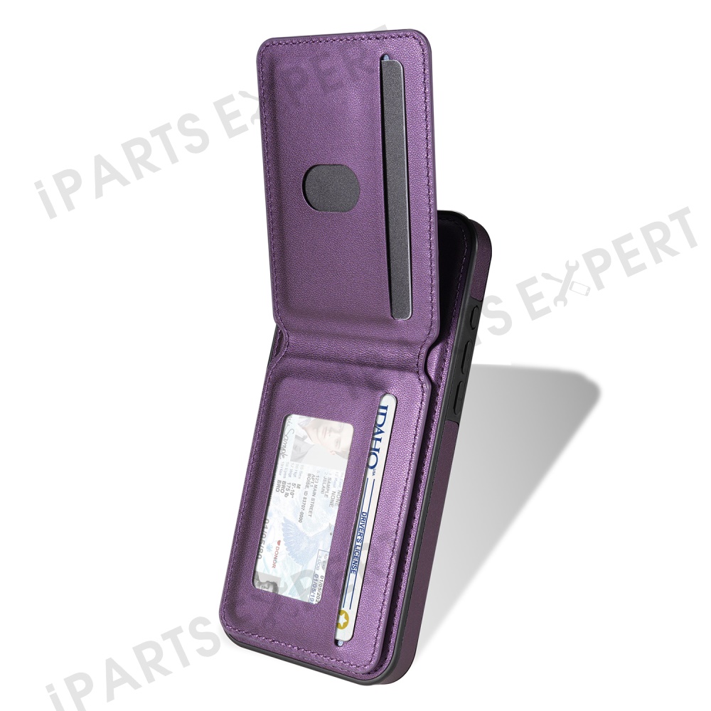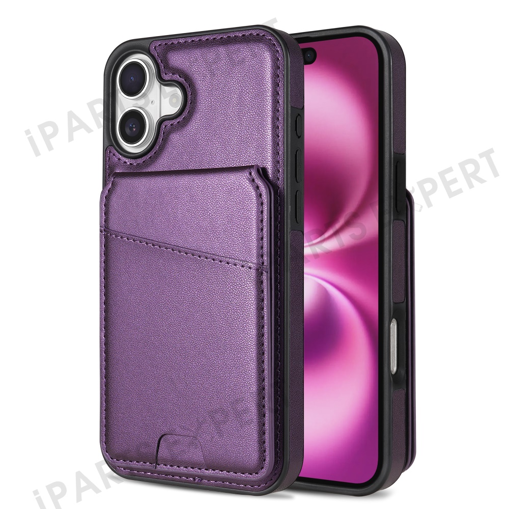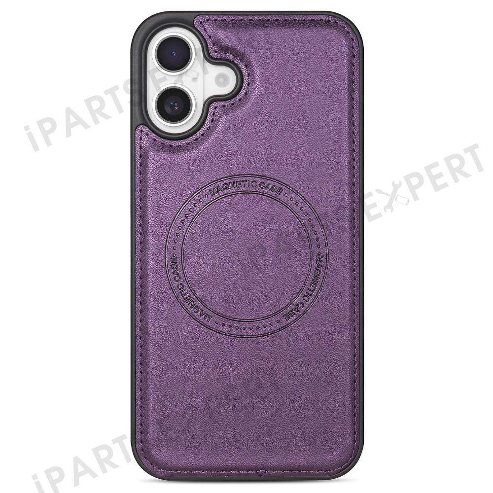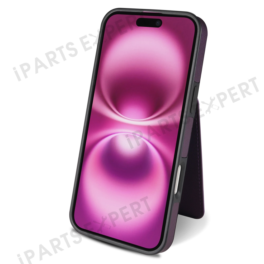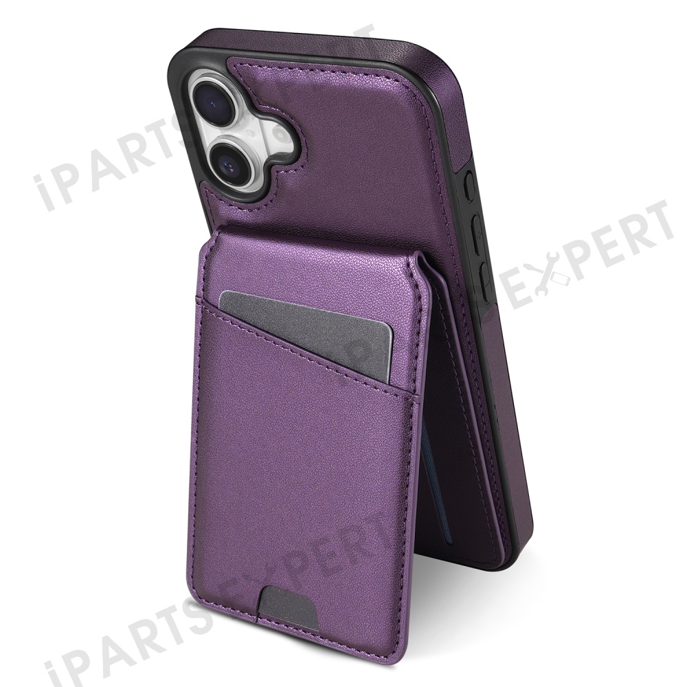 For iPhone 16 Case Compatible with MagSafe Detachable Card Holder Kickstand Leather Phone Back Cover - Purple