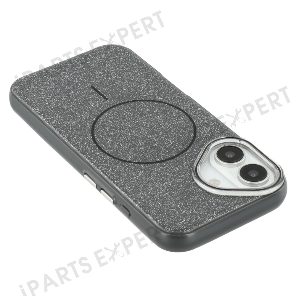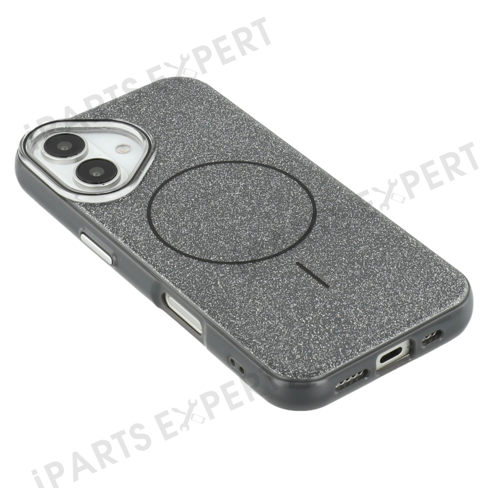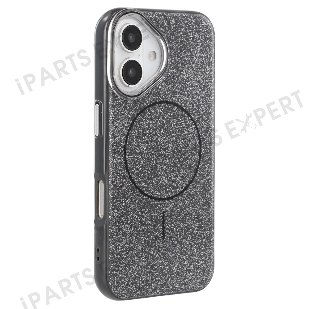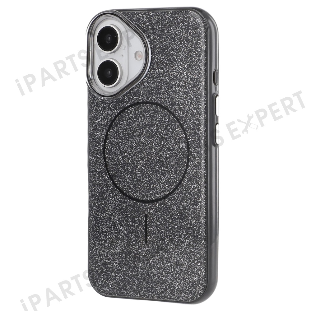 For iPhone 16 Case Compatible with MagSafe Glitter Design IMD TPU + PC Phone Back Cover - Black